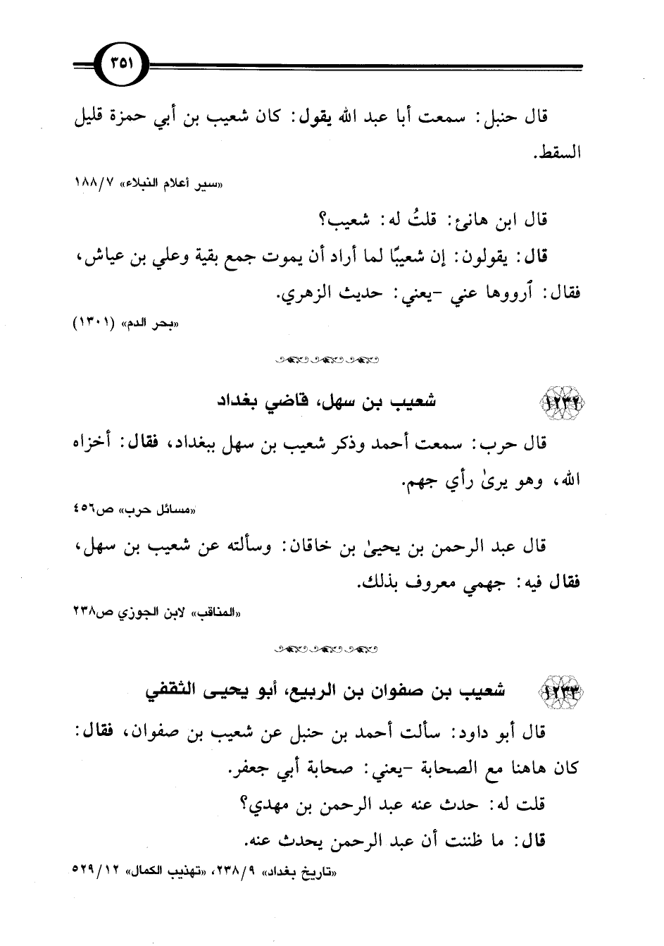 "تاريخ بغداد" 9/ 238، "تهذيب الكمال" 12/ 529