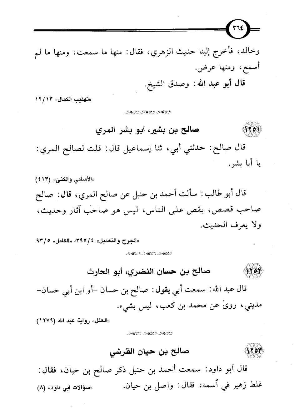 قال أبو داود: سمعت أحمد بن حنبل ذكر صالح بن حيان، فقال: غلط زهير في اسمه، فقال: واصل بن حيان.