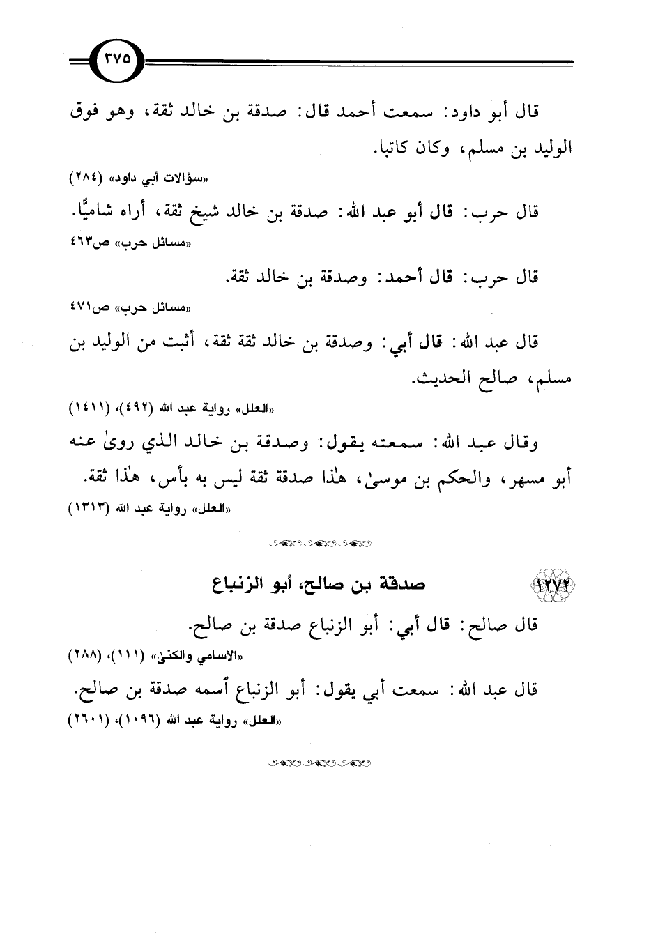 قال عبد اللَّه: قال أبي: وصدقة بن خالد ثقة ثقة، أثبت من الوليد بن مسلم، صالح الحديث.