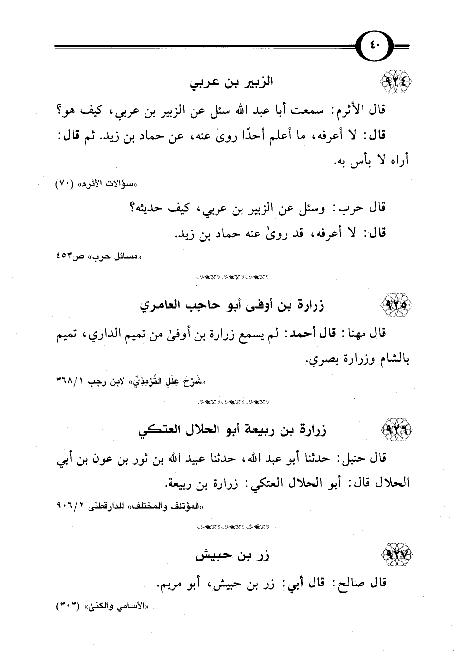 قال الأثرم: سمعت أبا عبد اللَّه سئل عن الزبير بن عربي، كيف هو؟