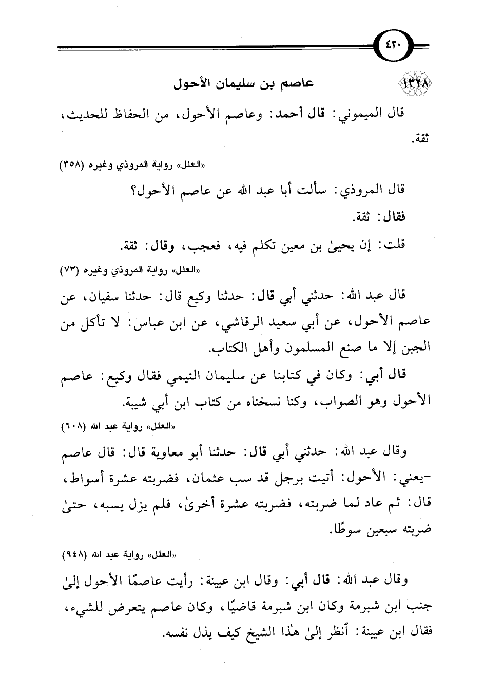 قال المروذي: سألت أبا عبد اللَّه عن عاصم الأحول؟