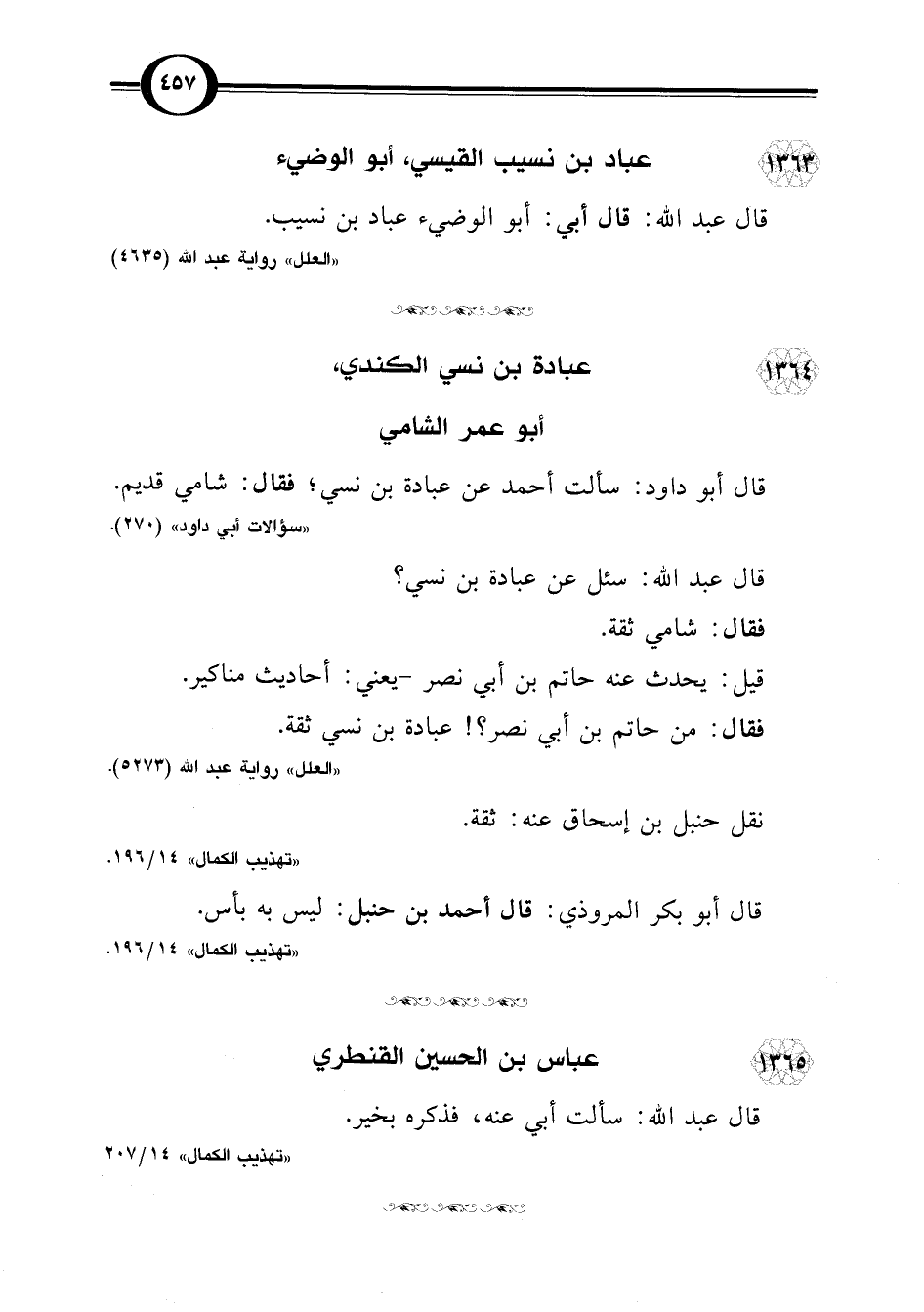 قال عبد اللَّه: قال أبي: أبو الوضيء عباد بن نسيب.
