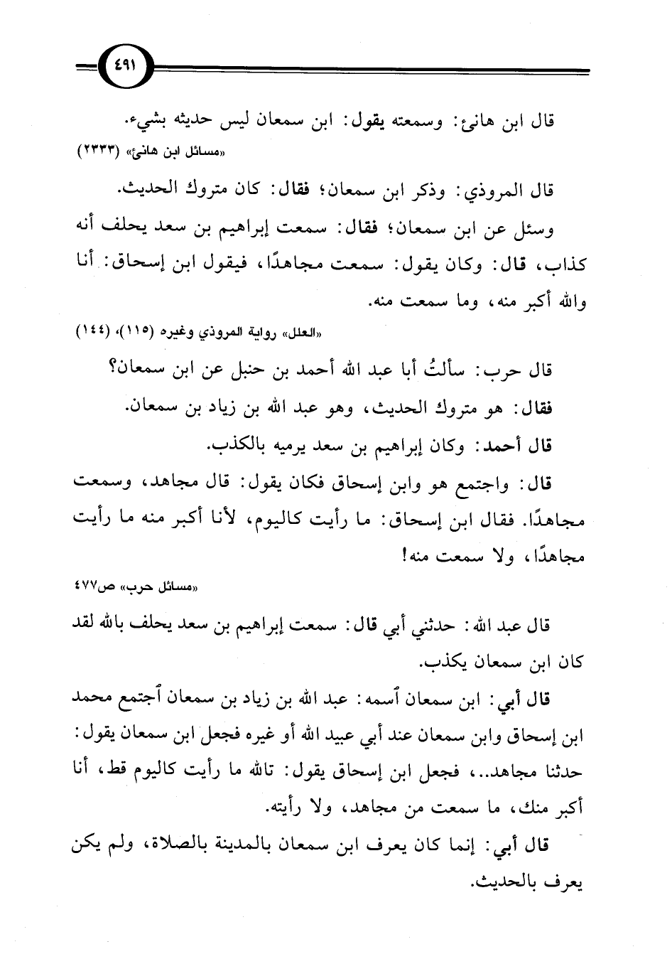 قال حرب: سألتُ أبا عبد اللَّه أحمد بن حنبل عن ابن سمعان؟