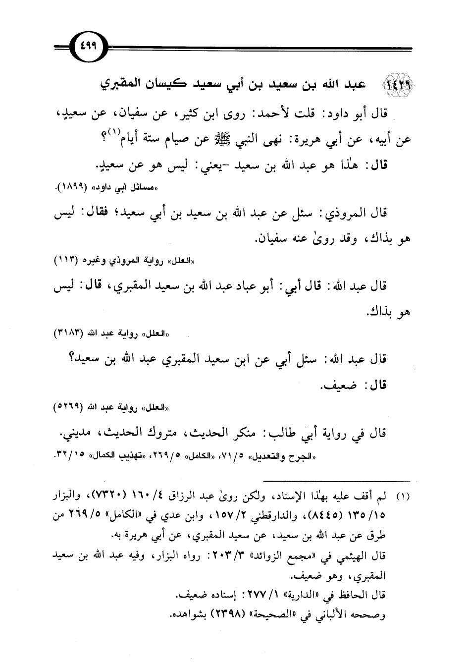 قال عبد اللَّه: سئل أبي عن ابن سعيد المقبري عبد اللَّه بن سعيد؟