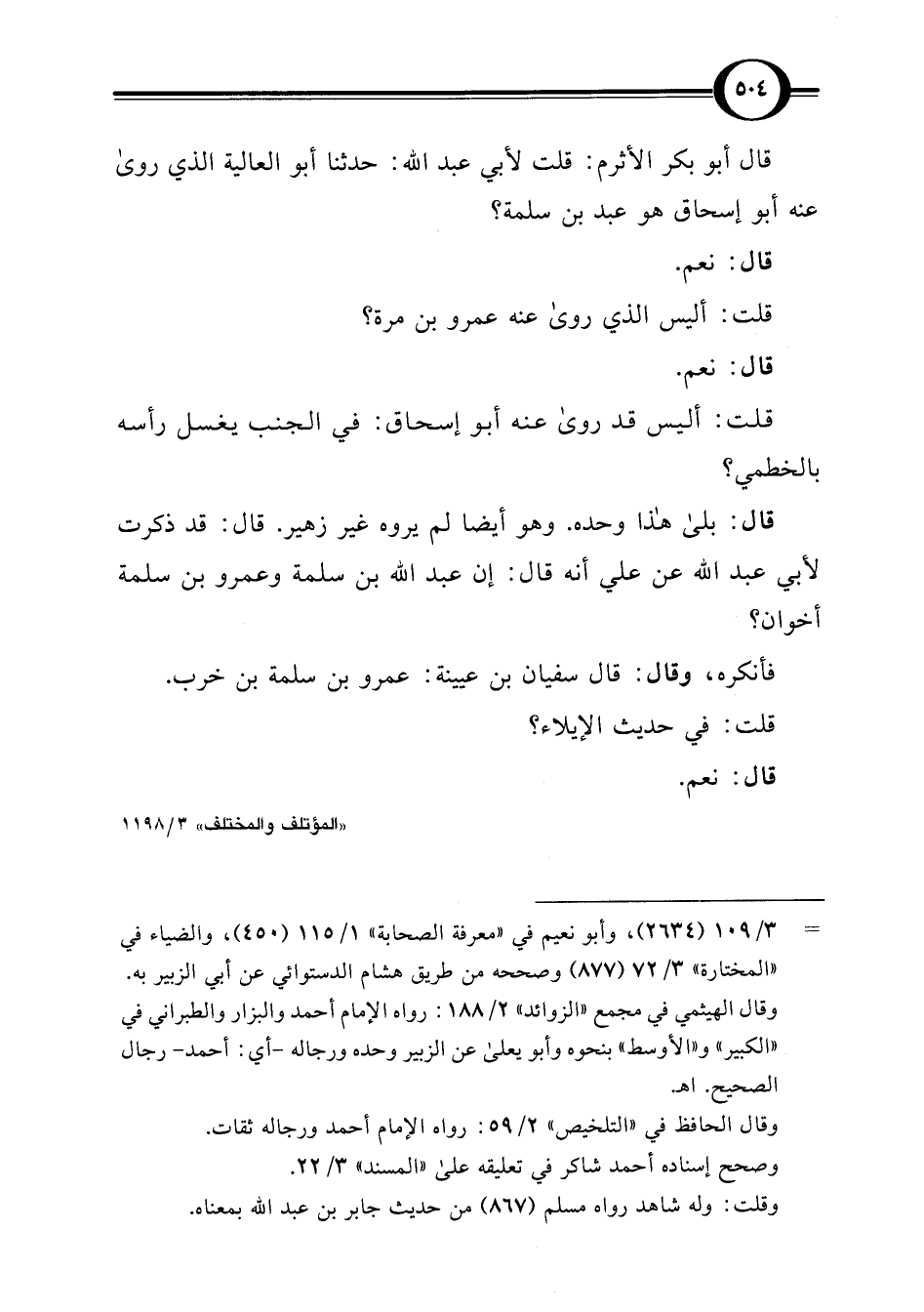 قال: بلى هذا وحده. وهو أيضًا لم يروه غير زهير. قال: قد ذكرت لأبي عبد اللَّه عن علي أنه قال: إن عبد اللَّه بن سلمة وعمرو بن سلمة أخوان؟