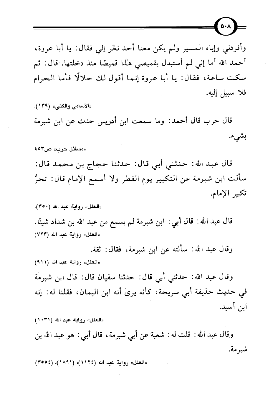 "العلل" رواية عبد اللَّه (1124)، (1891)، (3554)