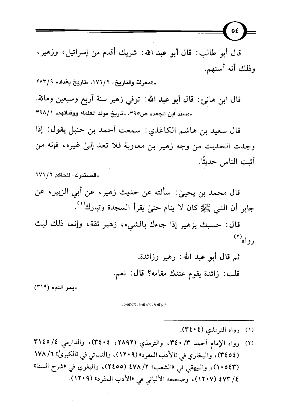 ثم قال أبو عبد اللَّه: زهير وزائدة.