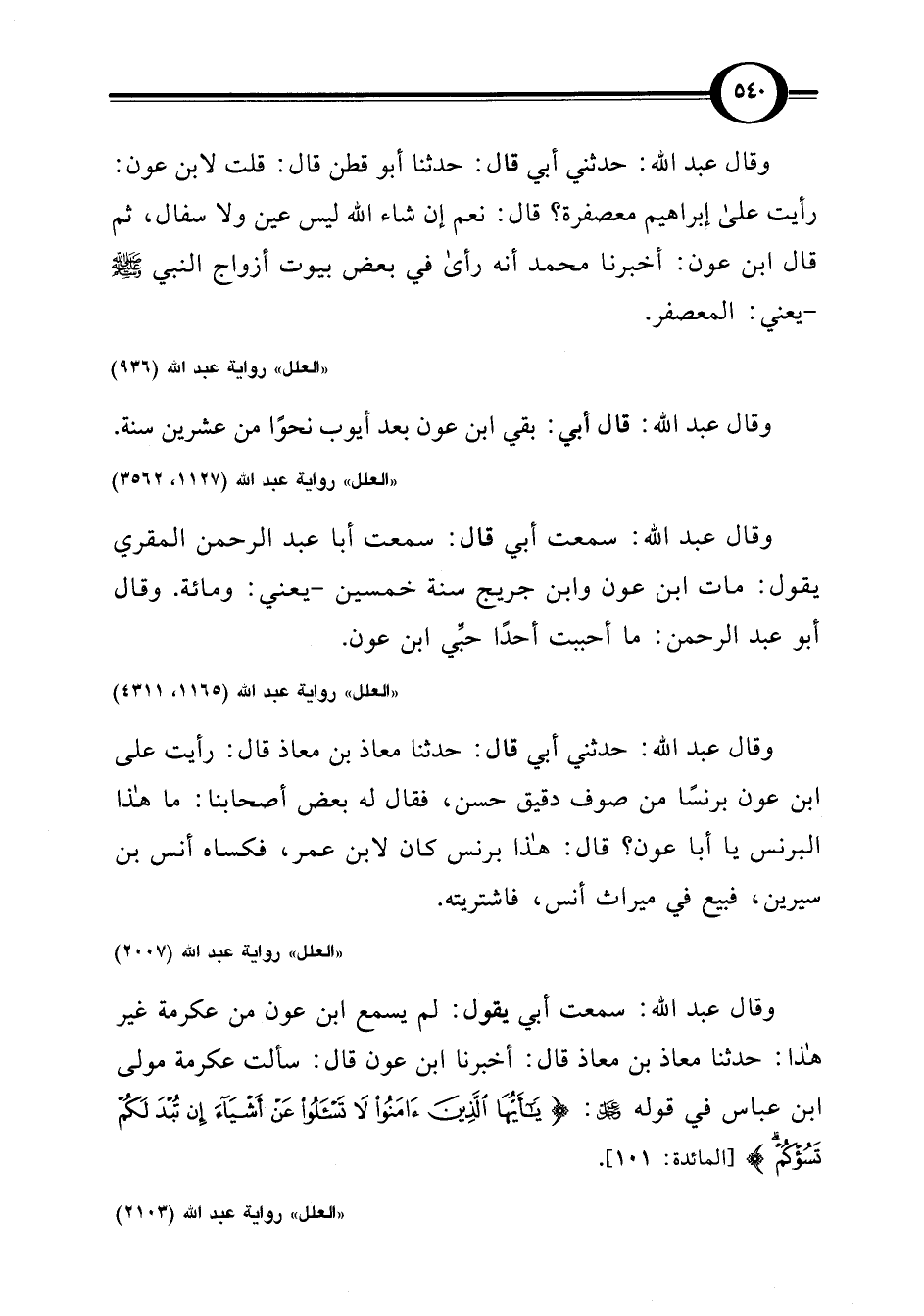 "العلل" رواية عبد اللَّه (1165، 4311)