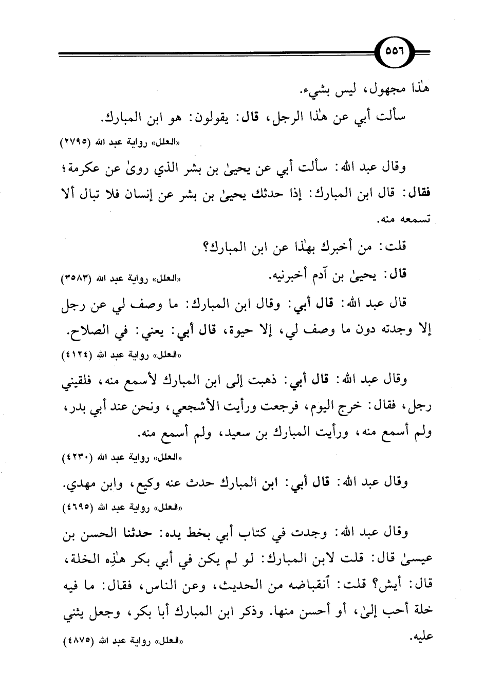 قلت: من أخبرك بهذا عن ابن المبارك؟