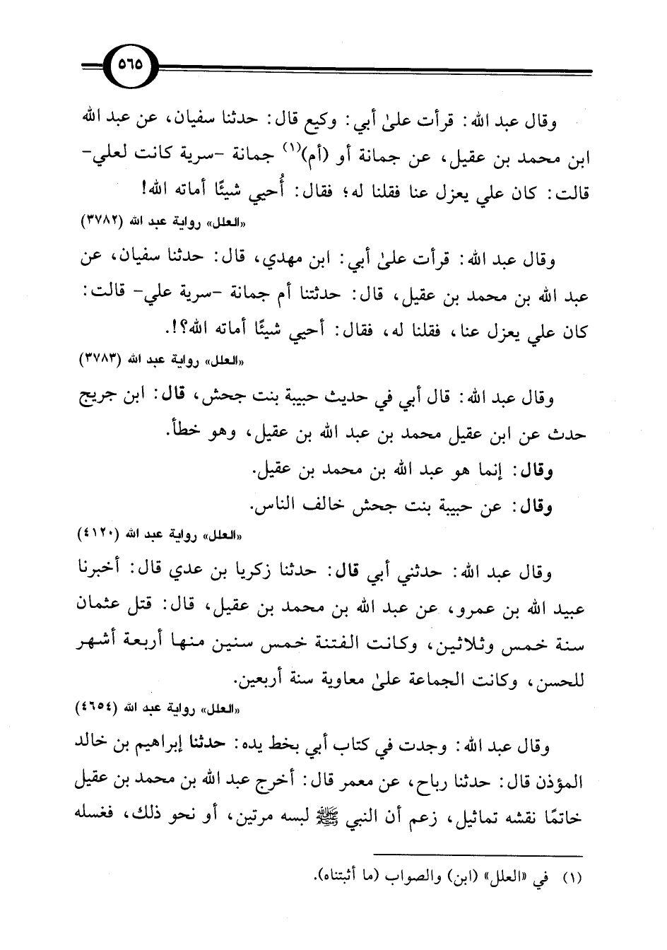 "العلل" رواية عبد اللَّه (3783)