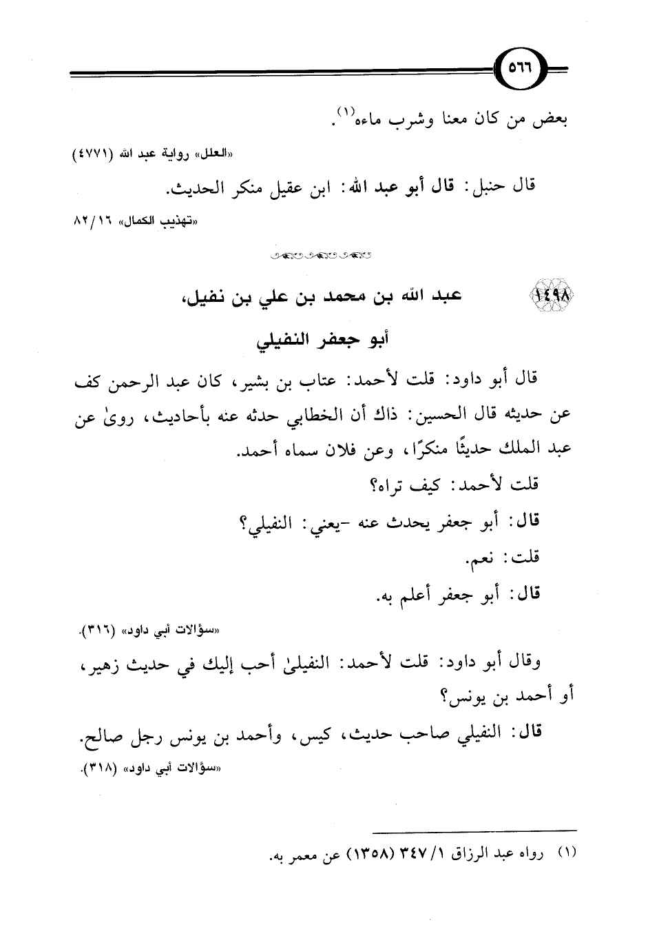 1498 - عبد اللَّه بن محمد بن علي بن نفيل، أبو جعفر النفيلي