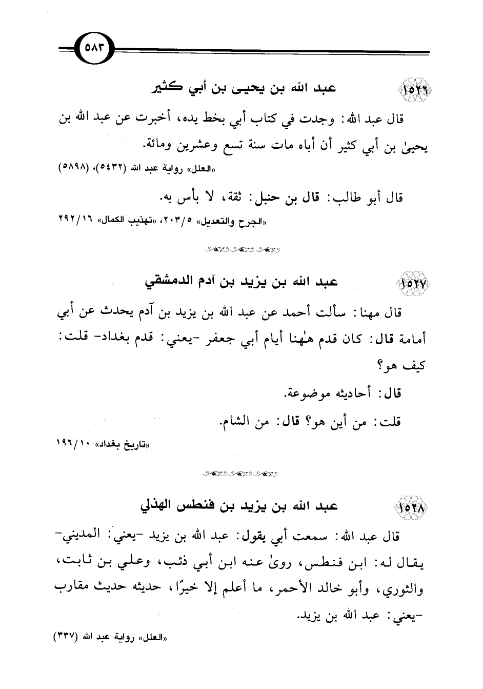 "العلل" رواية عبد اللَّه (5432)، (5898)
