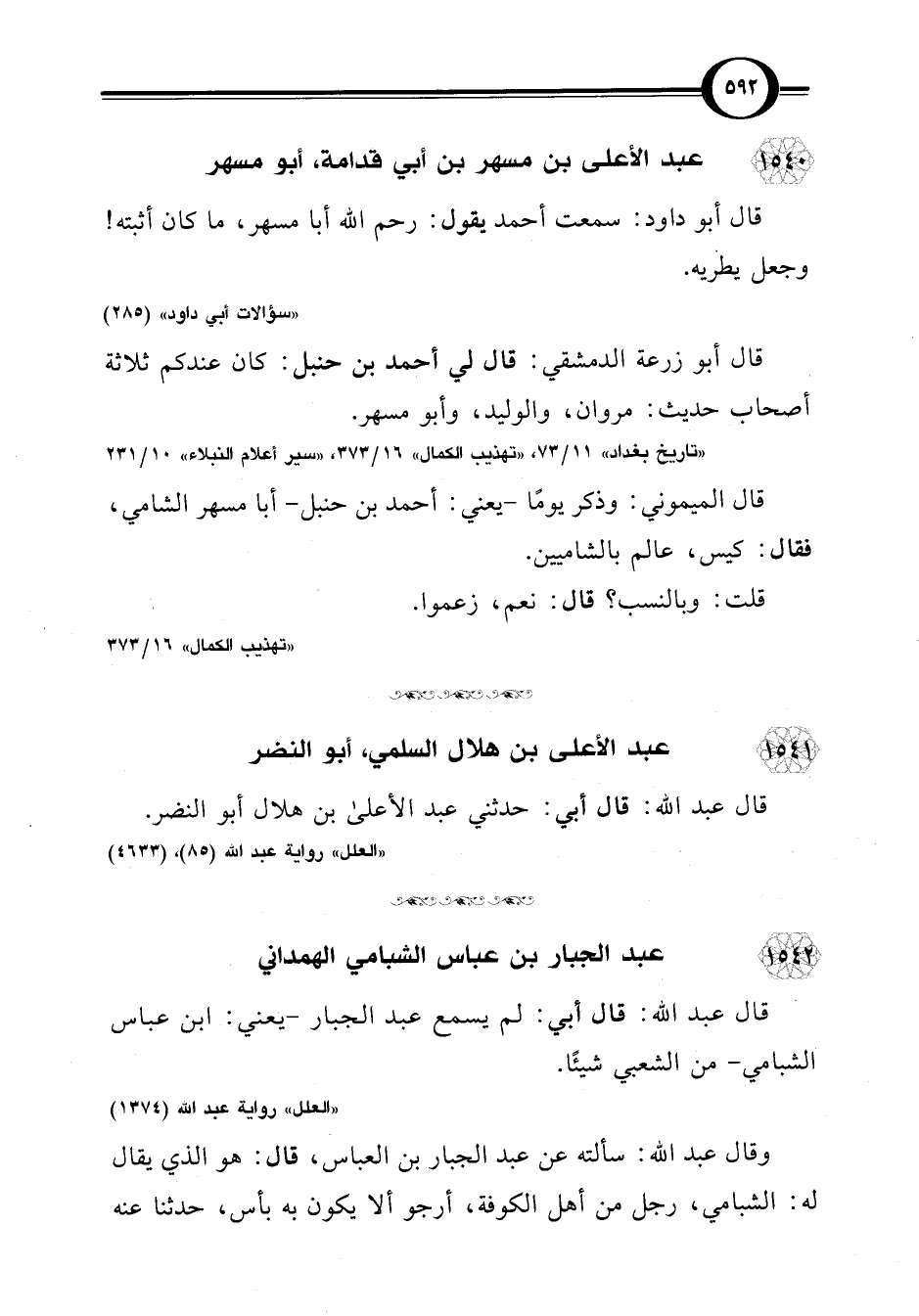 "تاريخ بغداد" 11/ 731، "تهذيب الكمال" 16/ 373، "سير أعلام النبلاء" 10/ 231