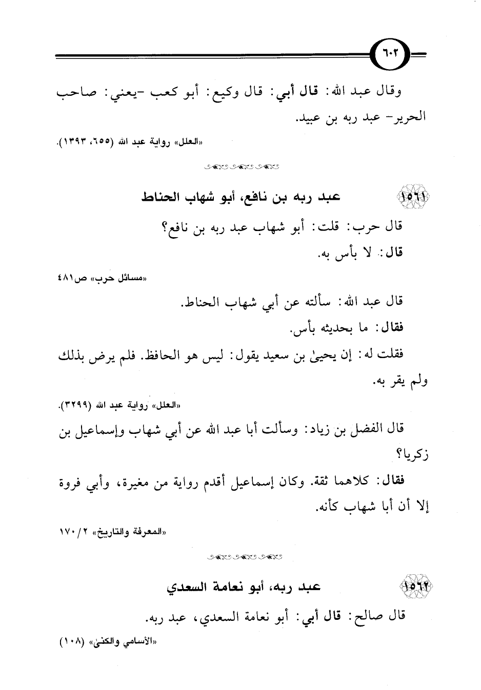 قال حرب: قلت: أبو شهاب عبد ربه بن نافع؟
