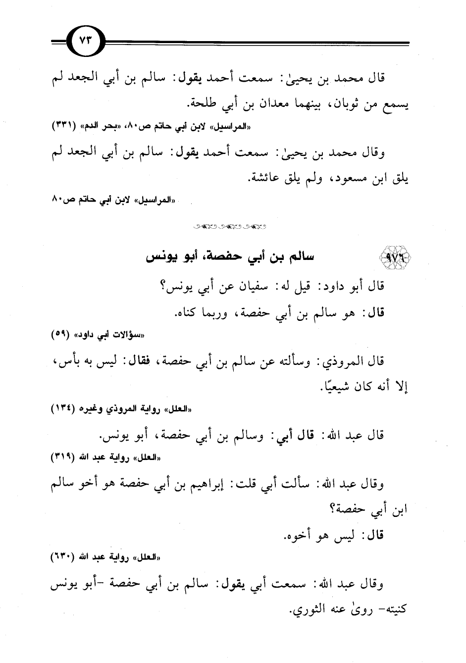 "المراسيل" لابن أبي حاتم ص 80، "بحر الدم" (331)
