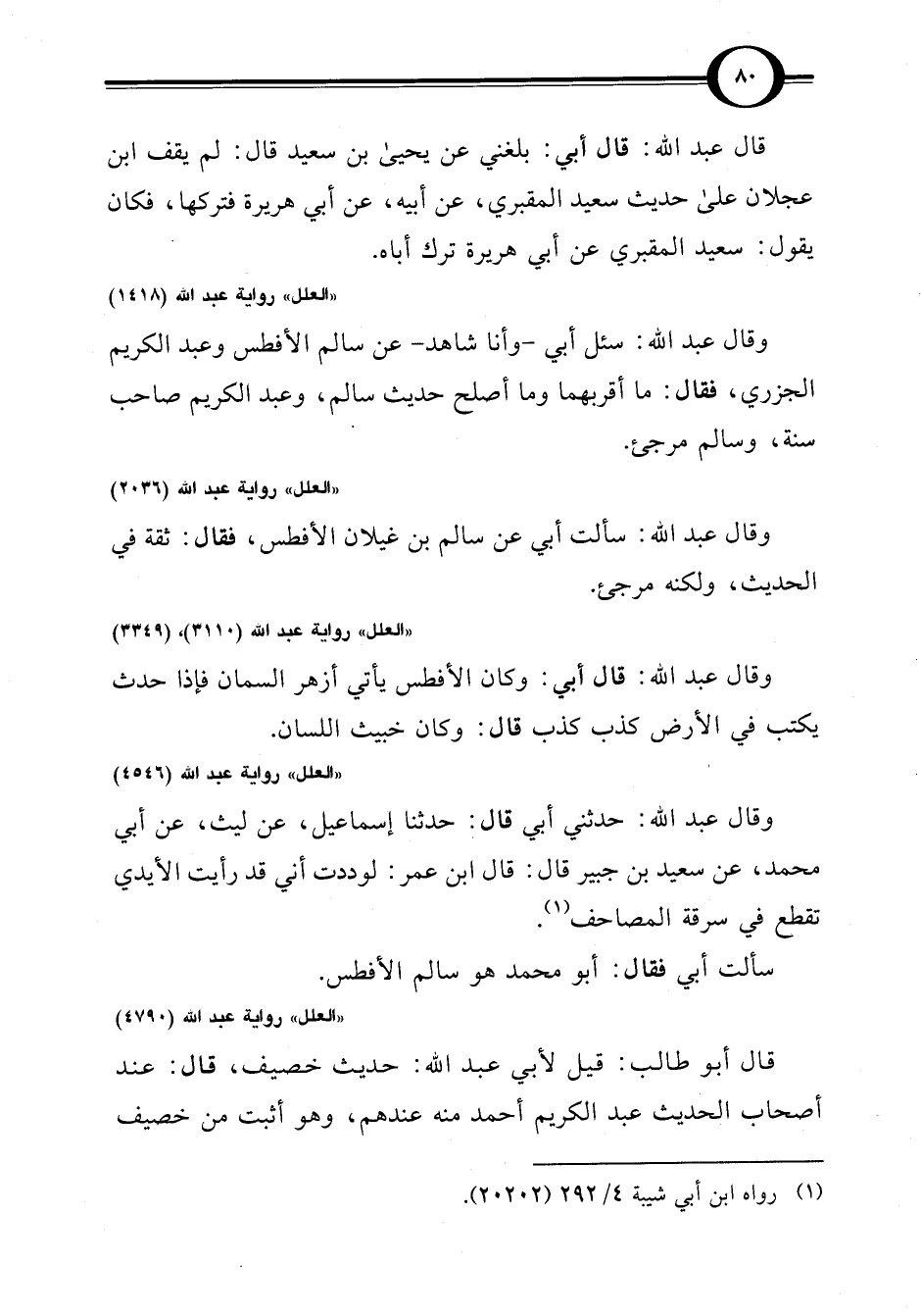 "العلل" رواية عبد اللَّه (3110)، (3349)