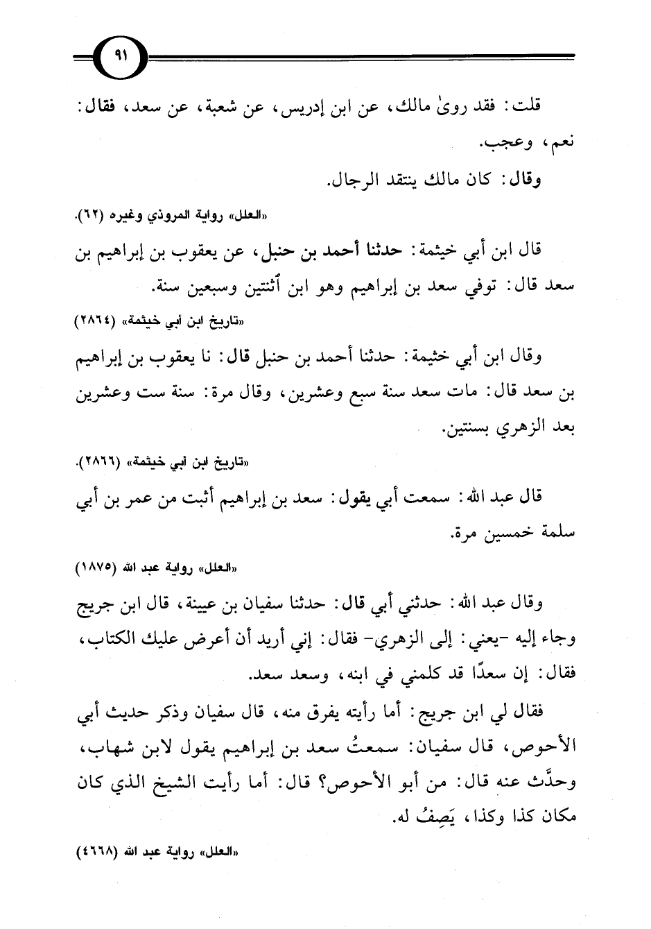"العلل" رواية عبد اللَّه (1875)
