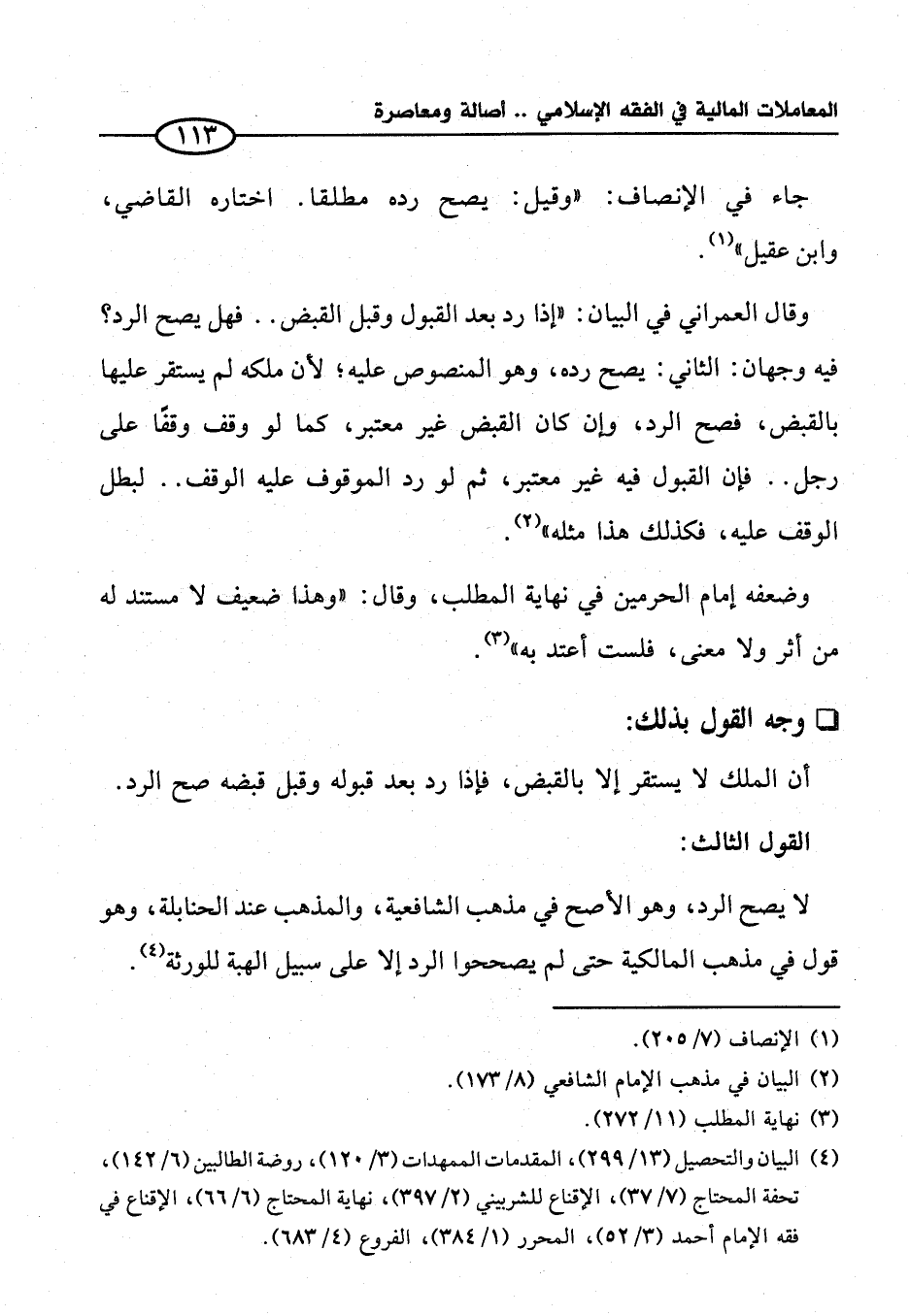 جاء في الإنصاف: "وقيل: يصح رده مطلقا. اختاره القاضي، وابن عقيل" (¬١).