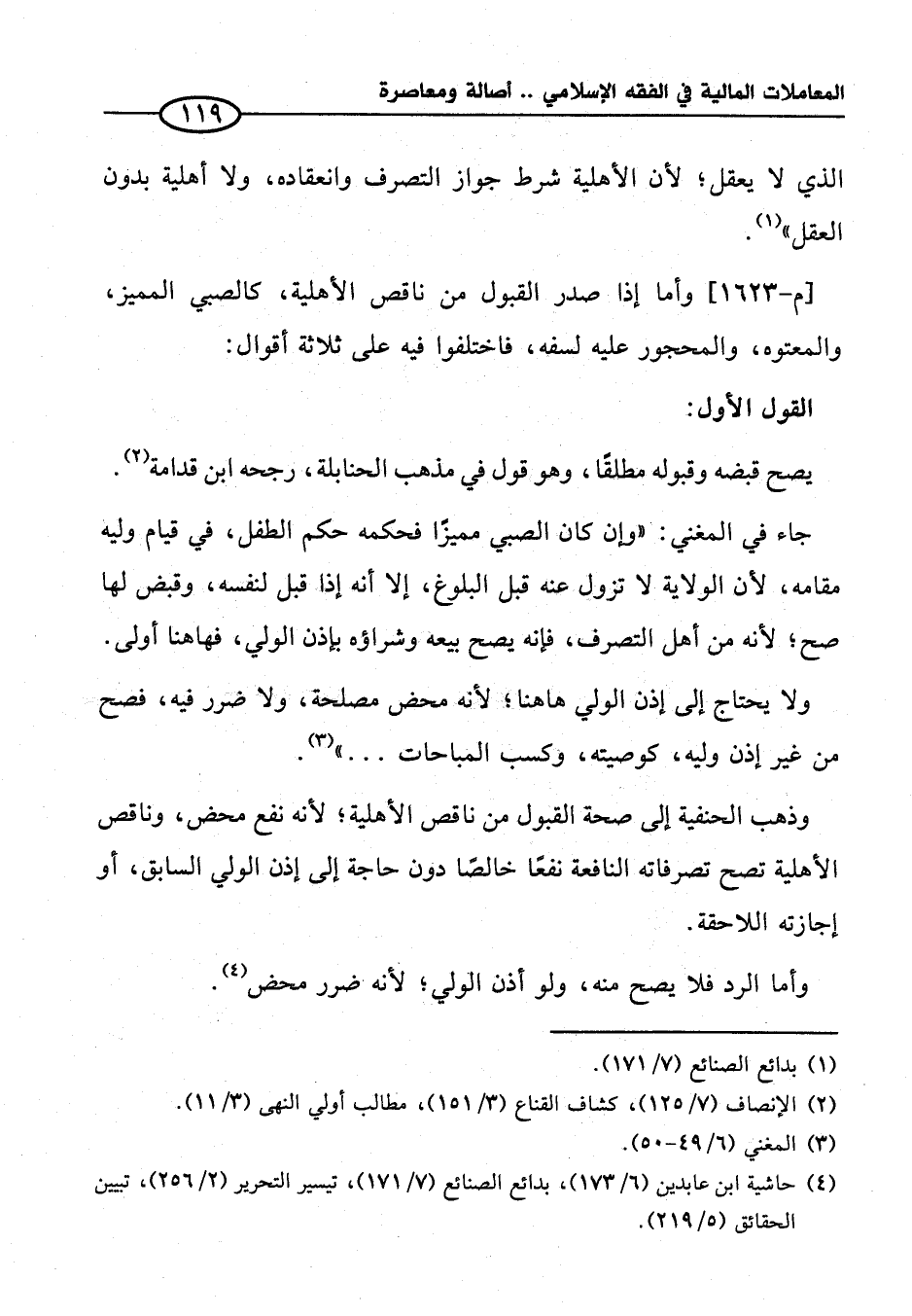 (¬٤) حاشية ابن عابدين (٦/ ١٧٣)، بدائع الصنائع (٧/ ١٧١)، تيسير التحرير (٢/ ٢٥٦)، تبيين الحقائق (٥/ ٢١٩).