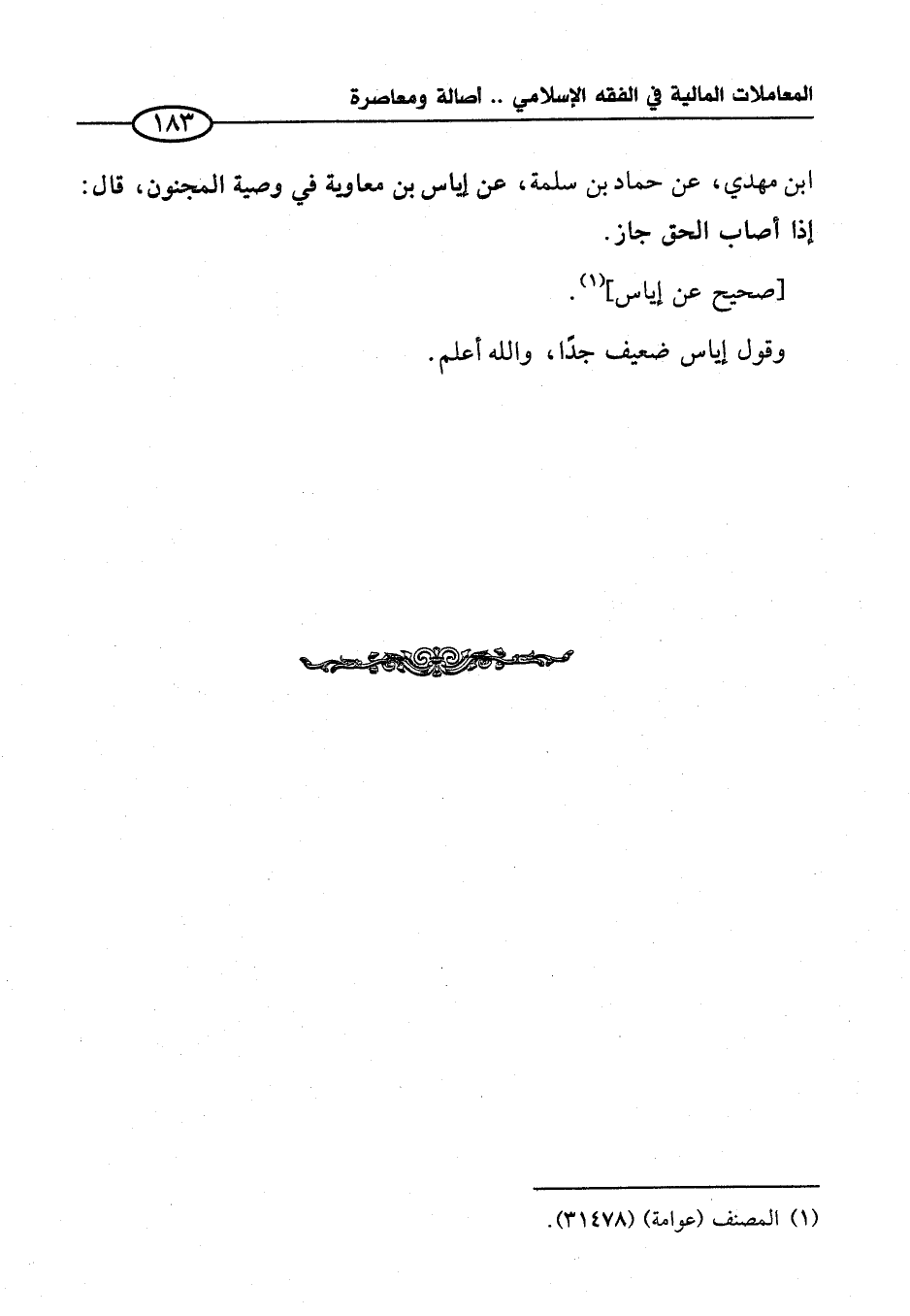 ابن مهدي، عن حماد بن سلمة، عن إياس بن معاوية في وصية المجنون، قال: إذا أصاب الحق جاز.