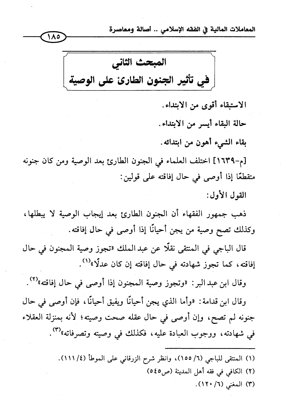 المبحث الثاني في تأثير الجنون الطارئ على الوصية