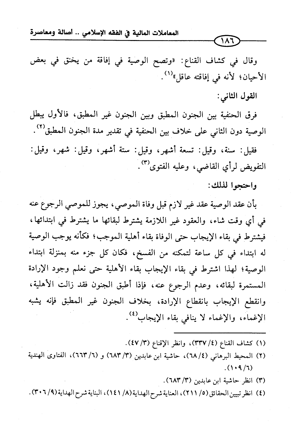 (¬٢) المحيط البرهاني (٤/ ٦٨)، حاشية ابن عابدين (٣/ ٦٨٣) و (٦/ ٦٦٣)، الفتاوى الهندية (٦/ ١٠٩).