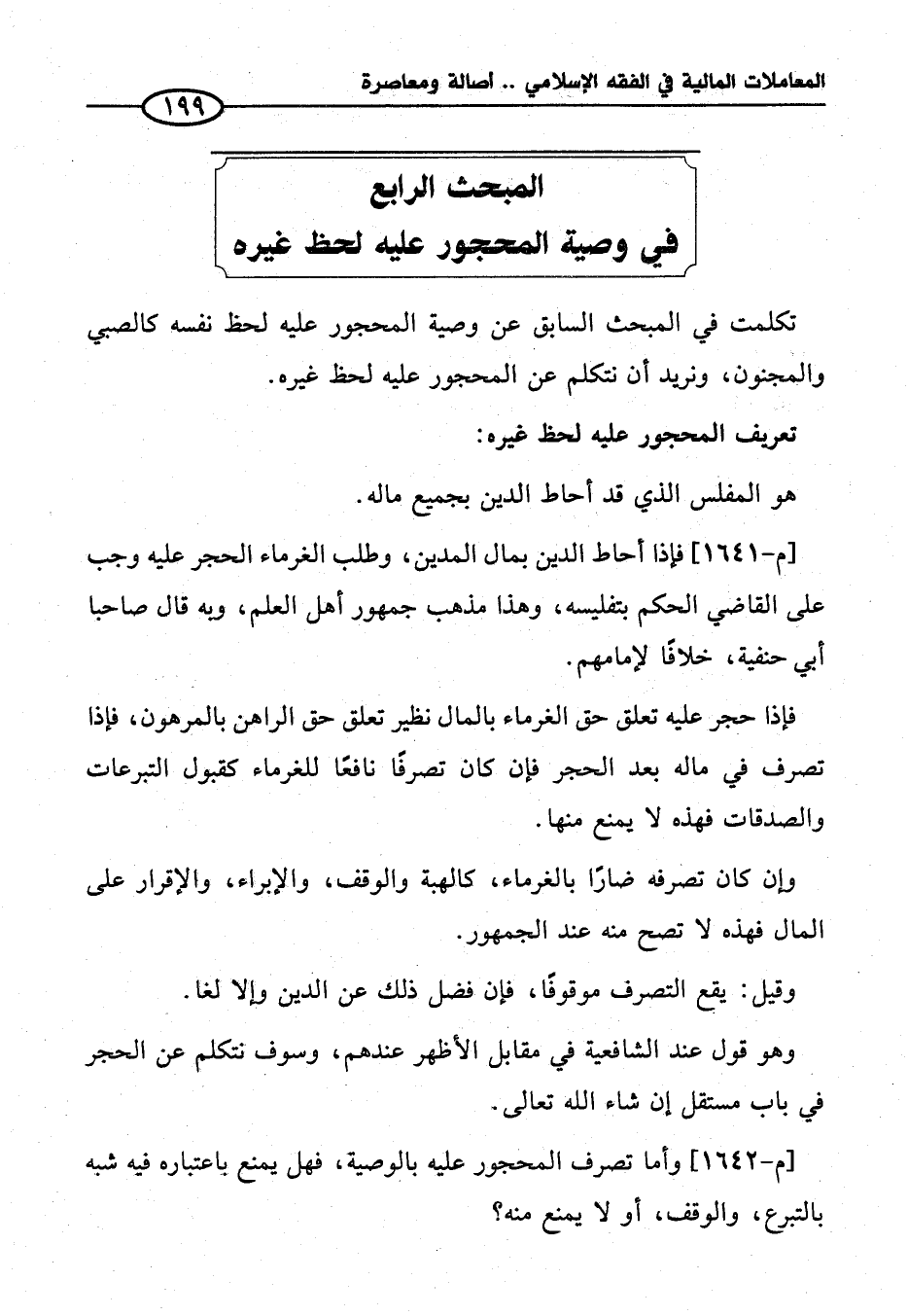 المبحث الرابع في وصية المحجور عليه لحظ غيره