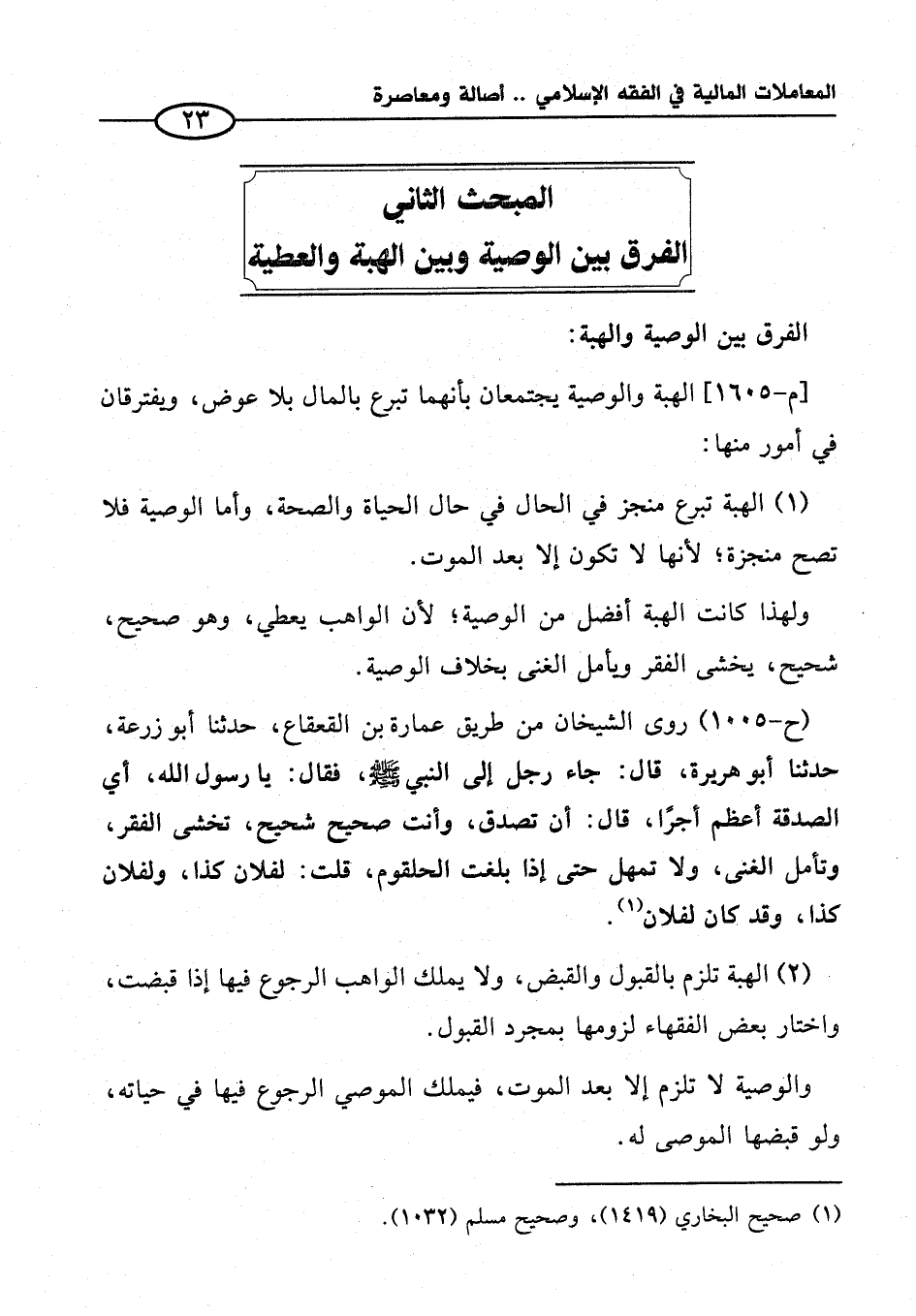 المبحث الثاني الفرق بين الوصية وبين الهبة والعطية
