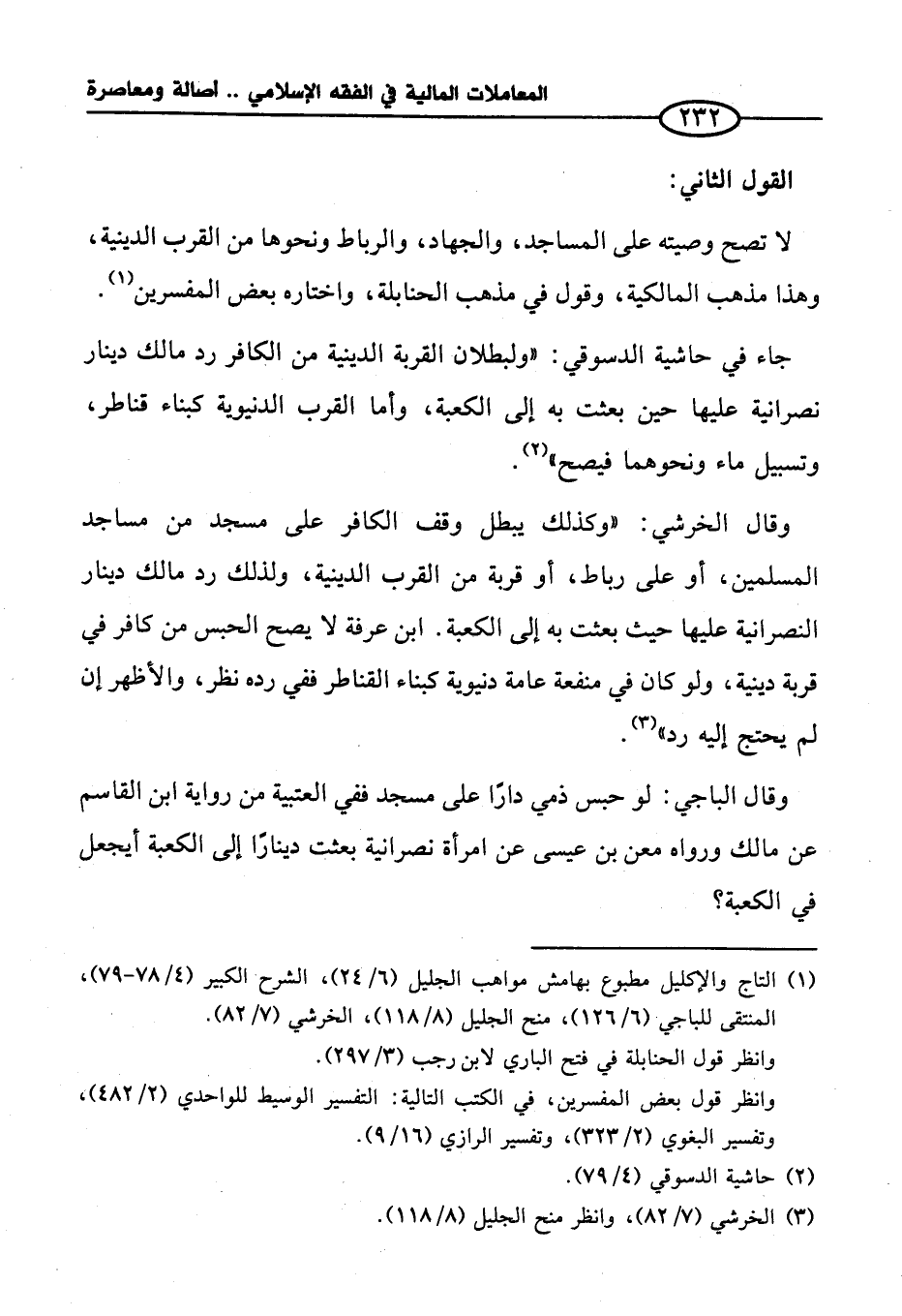 (¬١) التاج والإكليل مطبوع بهامش مواهب الجليل (٦/ ٢٤)، الشرح الكبير (٤/ ٧٨ - ٧٩)، المنتقى للباجي (٦/ ١٢٦)، منح الجليل (٨/ ١١٨)، الخرشي (٧/ ٨٢).