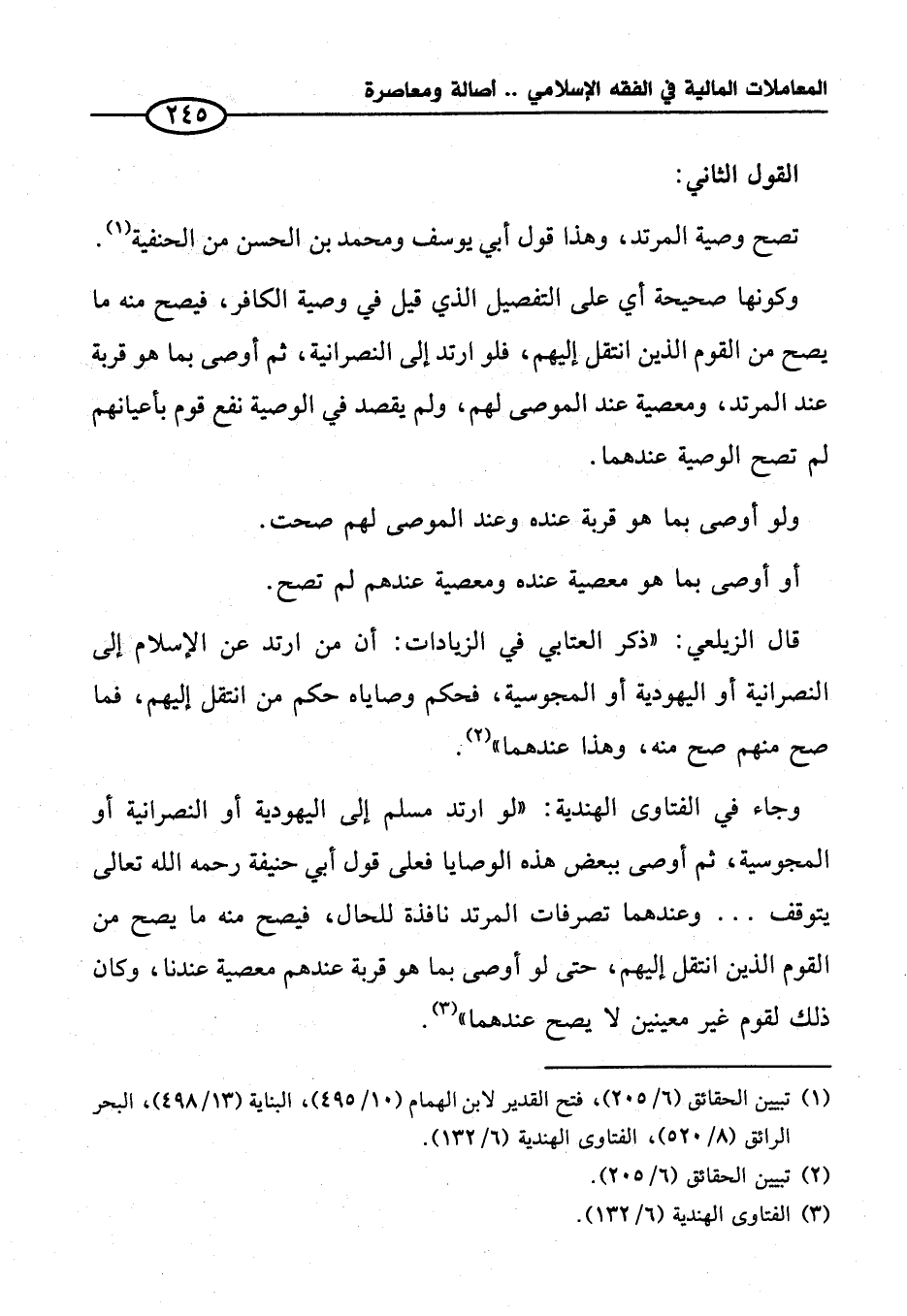 (¬١) تبيين الحقائق (٦/ ٢٠٥)، فتح القدير لابن الهمام (١٠/ ٤٩٥)، البناية (١٣/ ٤٩٨)، البحر الرائق (٨/ ٥٢٠)، الفتاوى الهندية (٦/ ١٣٢).