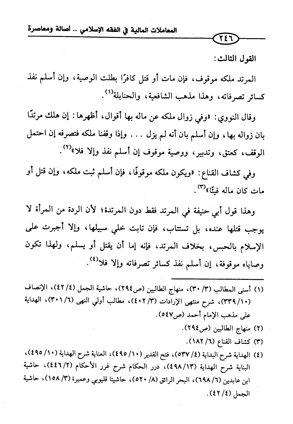 (¬٤) الهداية شرح البداية (٤/ ٥٣٧)، فتح القدير (١٠/ ٤٩٥)، العناية شرح الهداية (١٠/ ٤٩٥)، البناية شرح الهداية (١٣/ ٤٩٨)، درر الحكام شرح غرر الأحكام (٢/ ٤٤٦)، حاشية ابن عابدين (٦/ ٦٩٨)، البحر الرائق (٨/ ٥٢٠)، حاشيتا قليوبي وعميرة (٣/ ١٥٨)، حاشية الجمل (٤/ ٤٢).