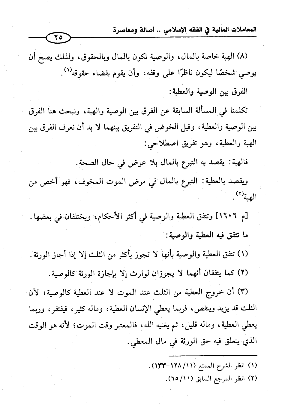 (١) تتفق العطية والوصية بأنها لا تجوز بأكثر من الثلث إلا إذا أجاز الورثة.