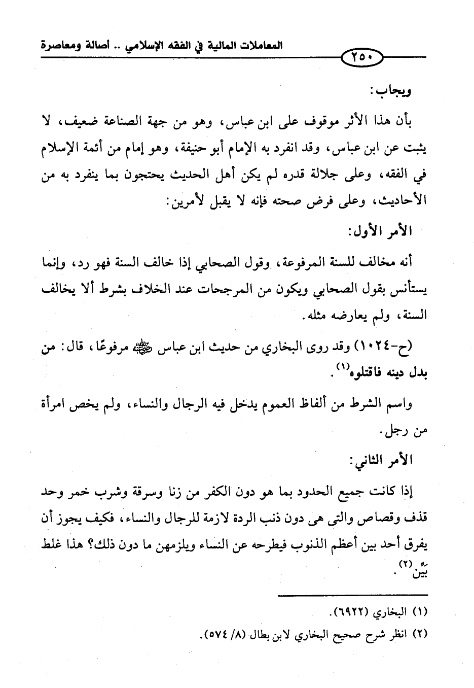 إذا كانت جميع الحدود بما هو دون الكفر من زنا وسرقة وشرب خمر وحد قذف وقصاص والتي هى دون ذنب الردة لازمة للرجال والنساء، فكيف يجوز أن يفرق أحد بين أعظم الذنوب فيطرحه عن النساء ويلزمهن ما دون ذلك؟ هذا غلط بَيِّين (¬٢).