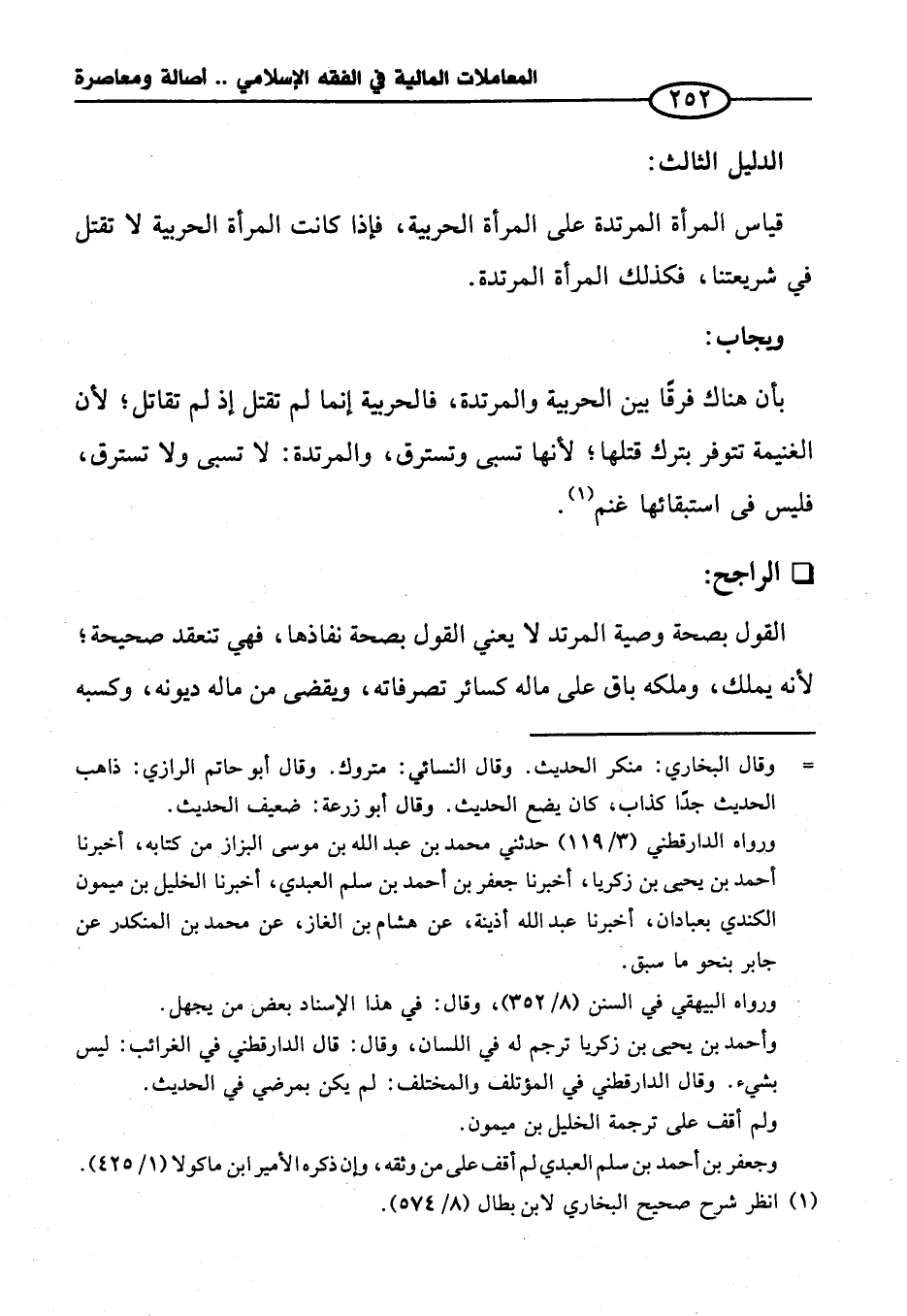 قياس المرأة المرتدة على المرأة الحربية، فإذا كانت المرأة الحربية لا تقتل في شريعتنا، فكذلك المرأة المرتدة.