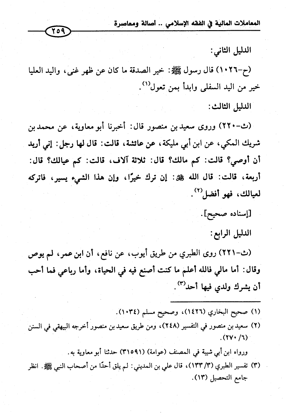 (ث -٢٢٠) وروى سعيد بن منصور قال: أخبرنا أبو معاوية، عن محمَّد بن شريك المكي، عن ابن أبي مليكة، عن عائشة، قالت: قال لها رجل: إني أريد أن أوصي؟ قالت: كم مالك؟ قال: ثلاثة آلاف، قالت: كم عيالك؟ قال: أربعة، قالت: قال الله - عَزَّ وَجَلَّ -: إن ترك خيرًا، وإن هذا الشيء يسير، فاتركه لعيالك، فهو أفضل (¬٢).