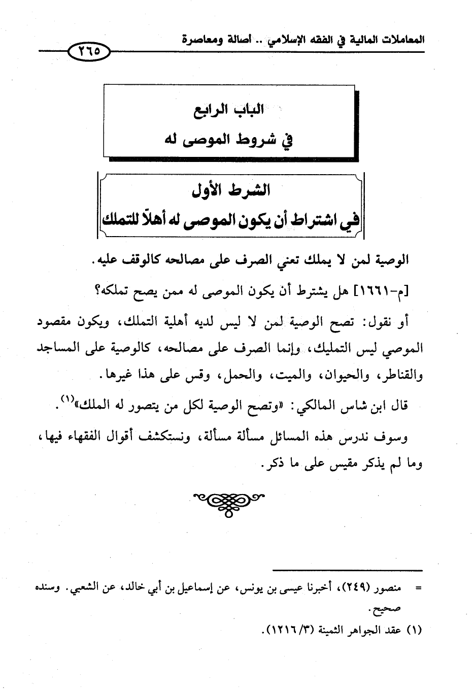 الباب الرابع في شروط الموصى له