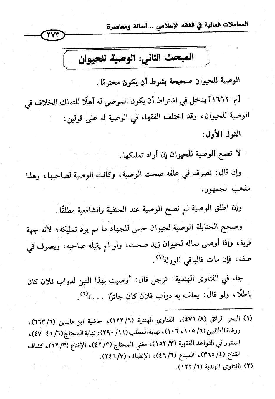 المبحث الثاني: الوصية للحيوان