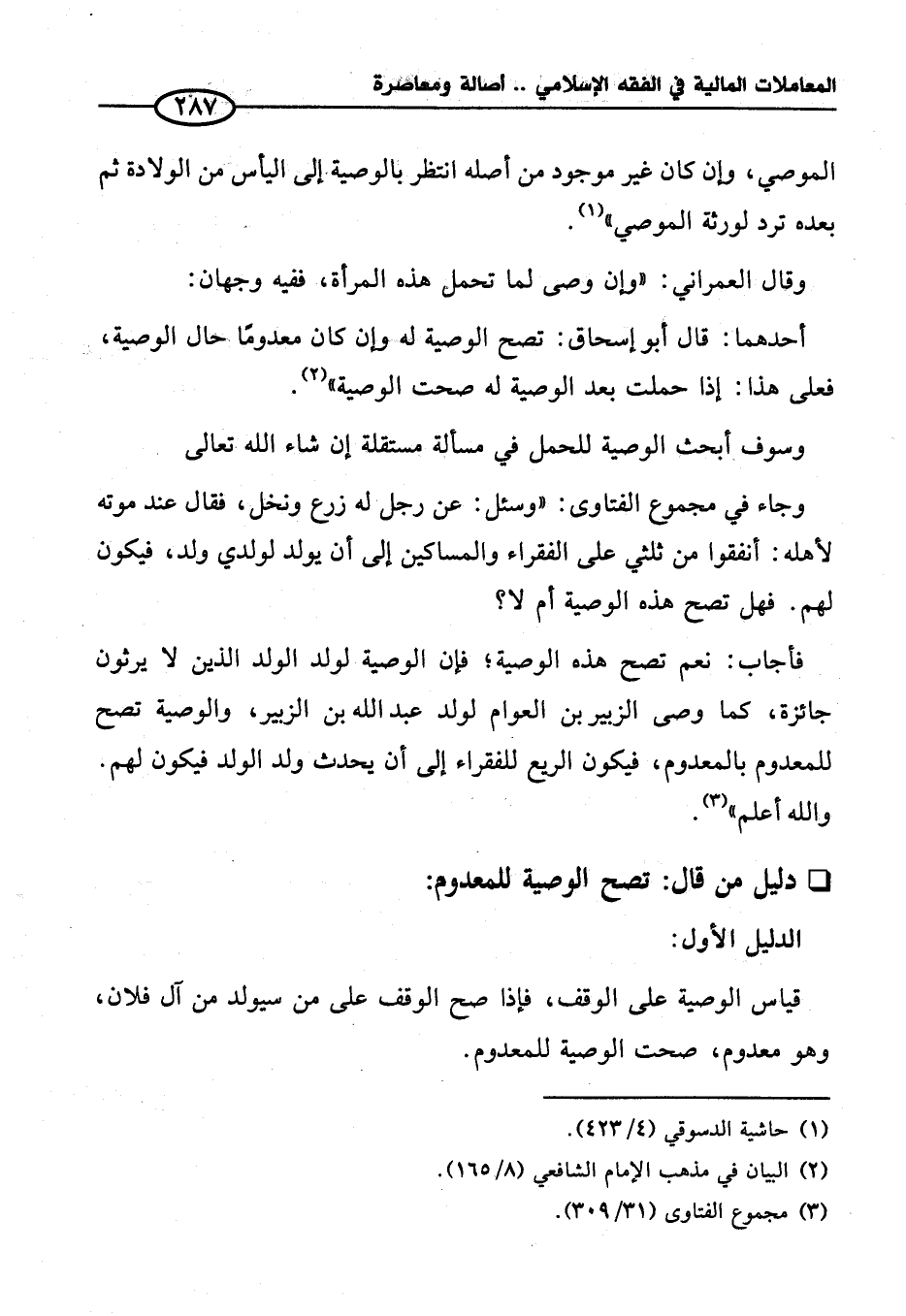 قياس الوصية على الوقف، فإذا صح الوقف على من سيولد من آل فلان، وهو معدوم، صحت الوصية للمعدوم.