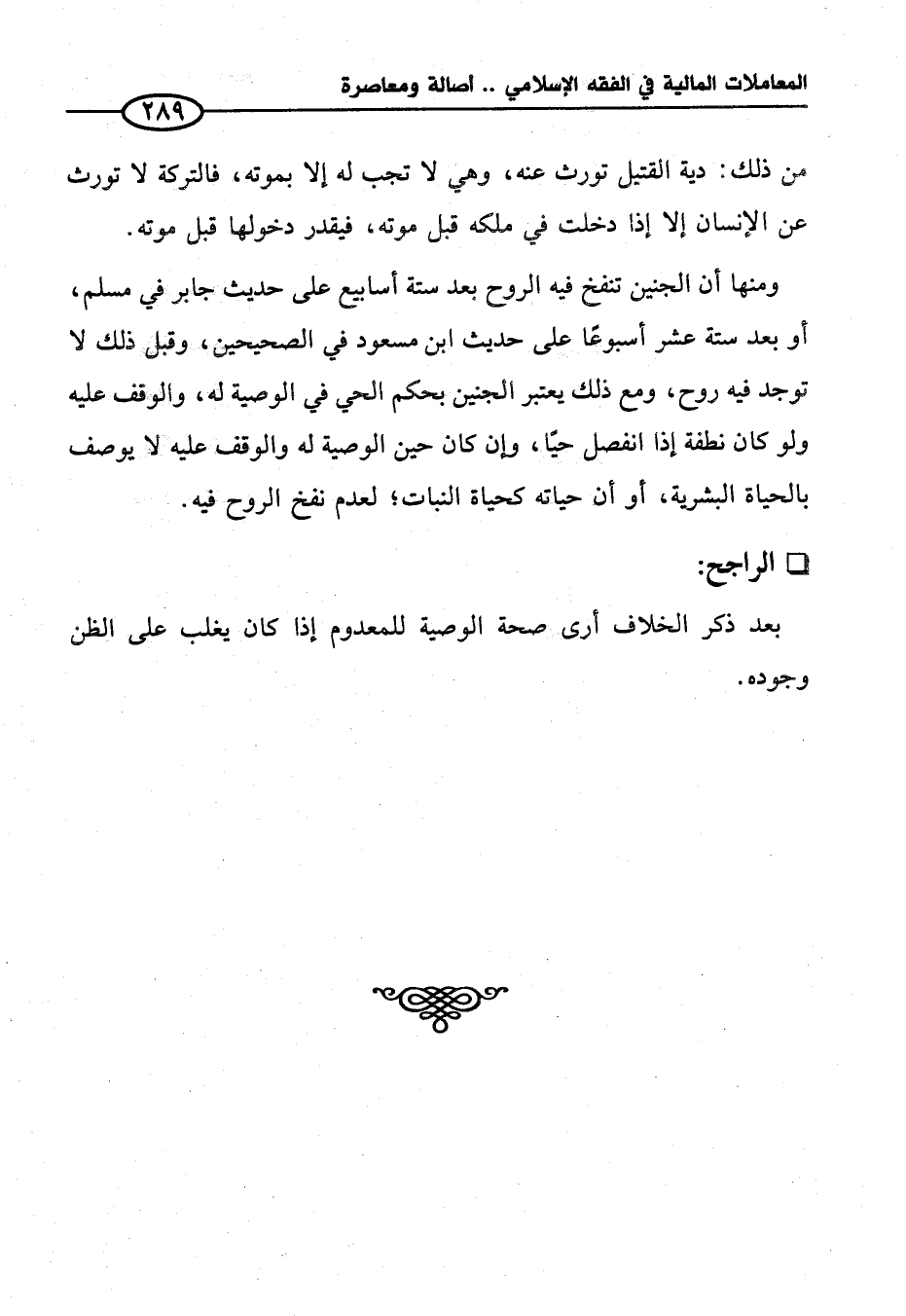 ومنها أن الجنين تنفخ فيه الروح بعد ستة أسابيع على حديث جابر في مسلم، أو بعد ستة عشر أسبوعًا على حديث ابن مسعود في الصحيحين، وقبل ذلك لا توجد فيه روح، ومع ذلك يعتبر الجنين بحكم الحي في الوصية له، والوقف عليه ولو كان نطفة إذا انفصل حيًا، وإن كان حين الوصية له والوقف عليه لا يوصف بالحياة البشرية، أو أن حياته كحياة النبات؛ لعدم نفخ الروح فيه.