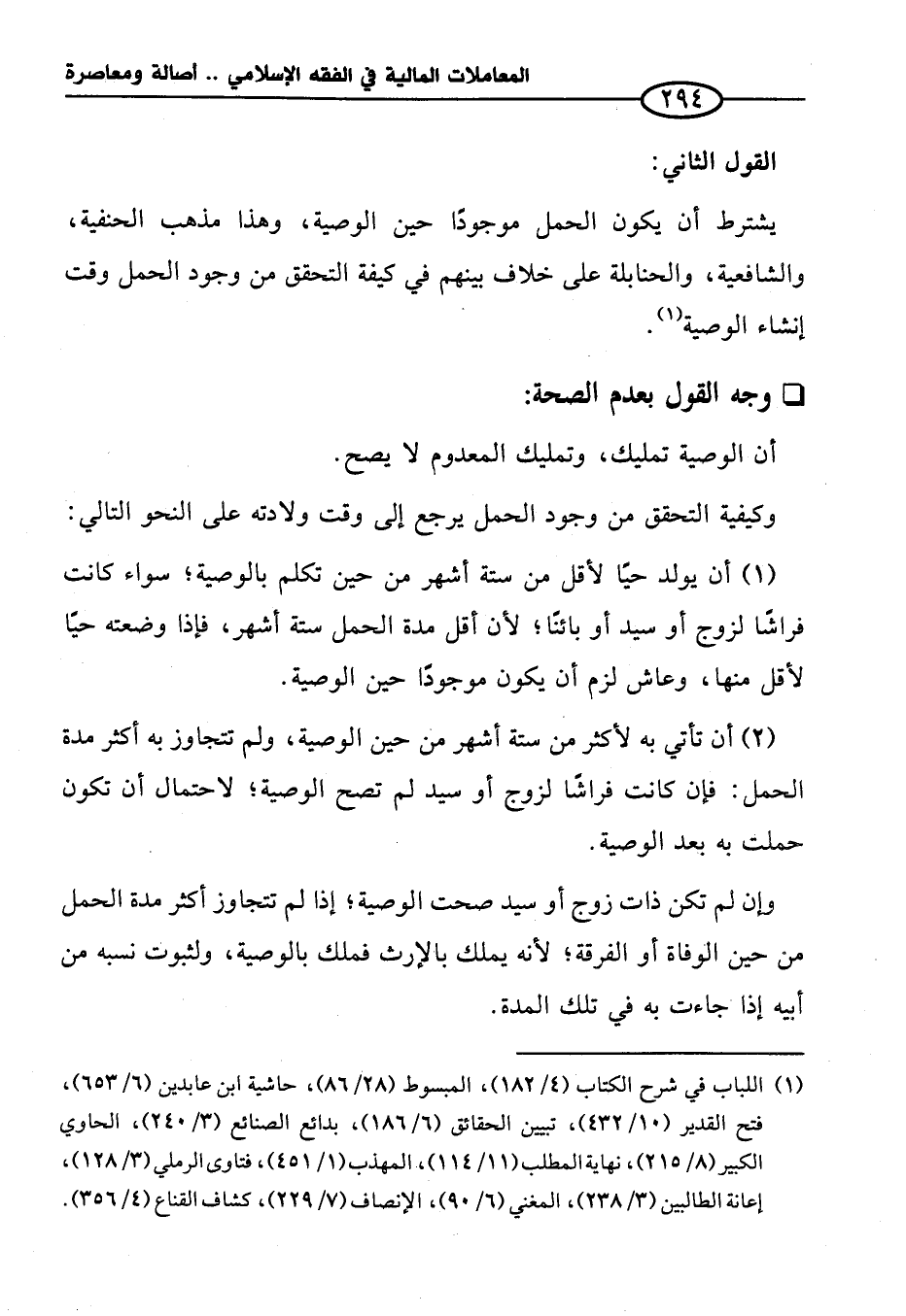 (٢) أن تأتي به لأكثر من ستة أشهر من حين الوصية، ولم تتجاوز به أكثر مدة الحمل: فإن كانت فراشًا لزوج أو سيد لم تصح الوصية؛ لاحتمال أن تكون حملت به بعد الوصية.