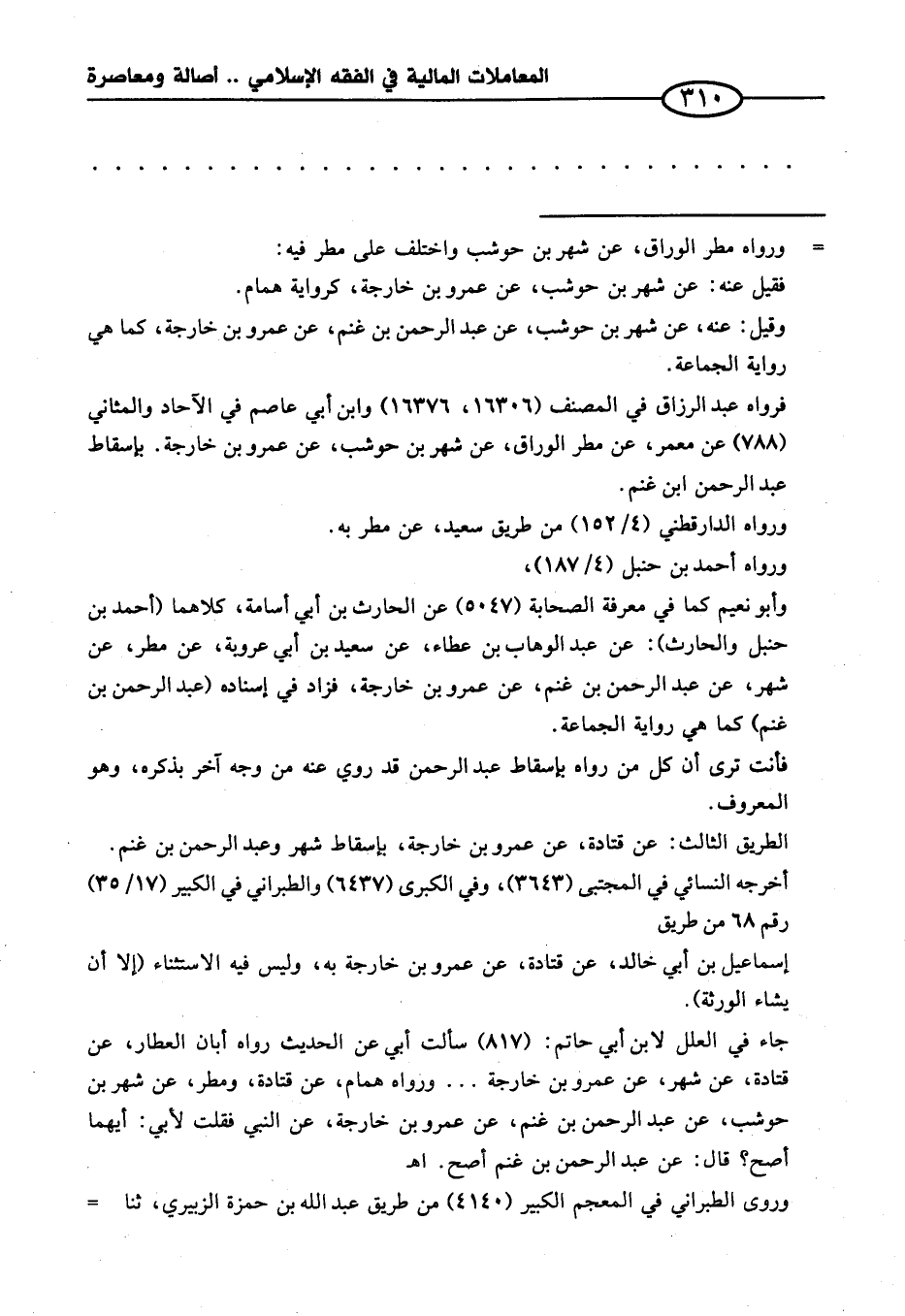 وقيل: عنه، عن شهر بن حوشب، عن عبد الرحمن بن غنم، عن عمرو بن خارجة، كما هي رواية الجماعة.