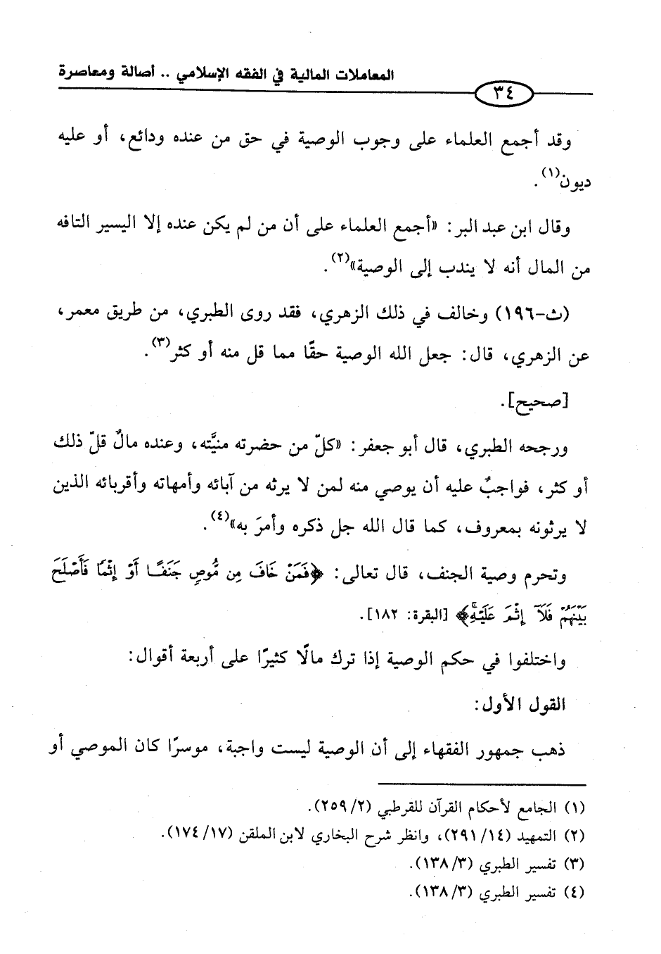 ورجحه الطبري، قال أبو جعفر: "كلّ من حضرته منيَّته، وعنده مالٌ قلّ ذلك أو كثر، فواجبٌ عليه أن يوصي مثله لمن لا يرثه من آبائه وأمهاته وأقربائه الذين لا يرثونه بمعروف، كما قال الله جل ذكره وأمرَ به" (¬٤).