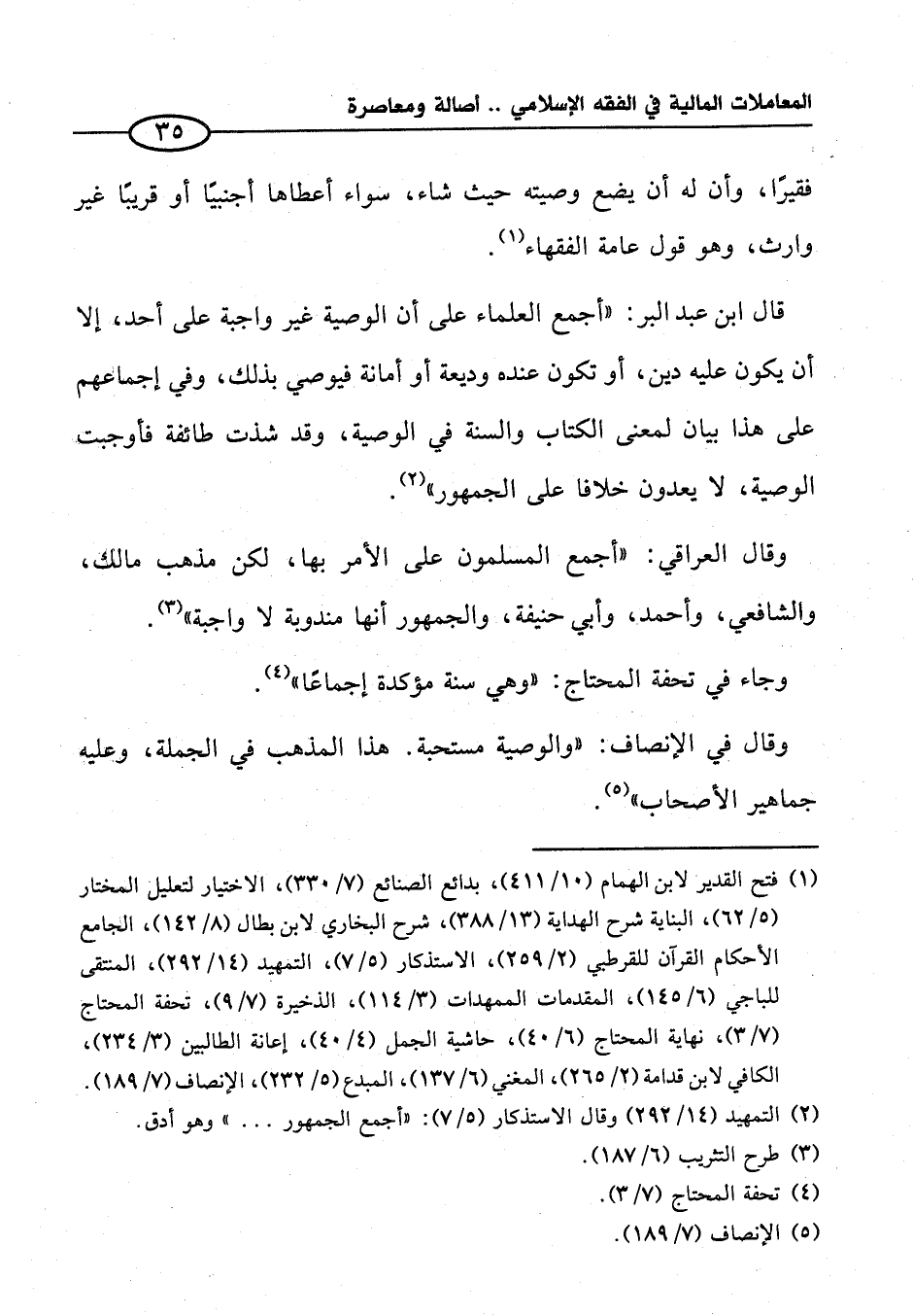 وقال في الإنصاف: "والوصية مستحبة. هذا المذهب في الجملة، وعليه جماهير الأصحاب" (¬٥).