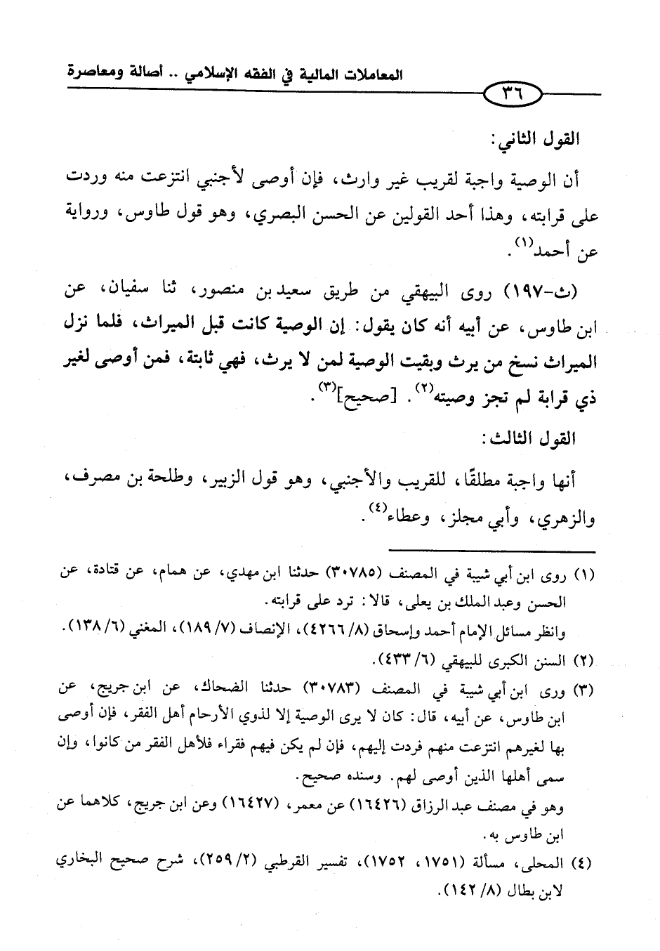 (ث -١٩٧) روى البيهقي من طريق سعيد بن منصور، ثنا سفيان، عن ابن طاوس، عن أبيه أنه كان يقول: إن الوصية كانت قبل الميراث، فلما نزل الميراث نسخ من يرث وبقيت الوصية لمن لا يرث، فهي ثابتة، فإن أوصى لغير ذي قرابة لم تجز وصيته (¬٢). [صحيح] (¬٣).