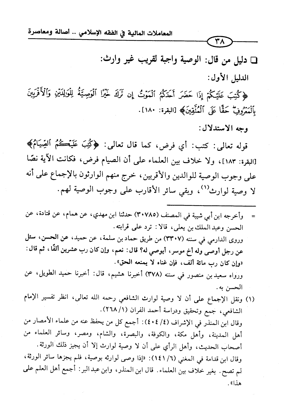 {كُتِبَ عَلَيْكُمْ إِذَا حَضَرَ أَحَدَكُمُ الْمَوْتُ إِنْ تَرَكَ خَيْرًا الْوَصِيَّةُ لِلْوَالِدَيْنِ وَالْأَقْرَبِينَ بِالْمَعْرُوفِ حَقًّا عَلَى الْمُتَّقِينَ} [البقرة: ١٨٠].