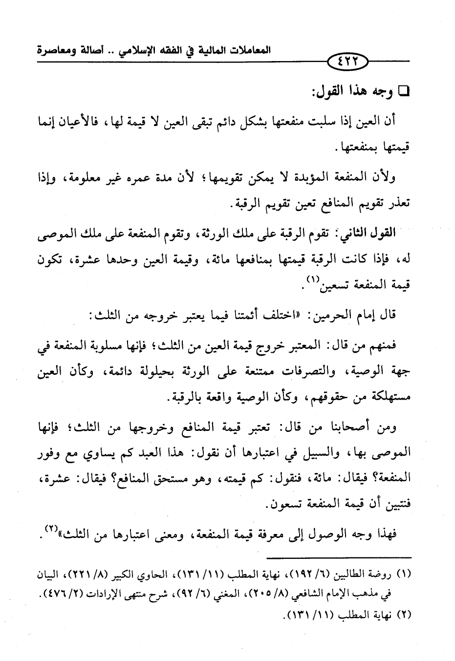 فهذا وجه الوصول إلى معرفة قيمة المنفعة، ومعنى اعتبارها من الثلث" (¬٢).