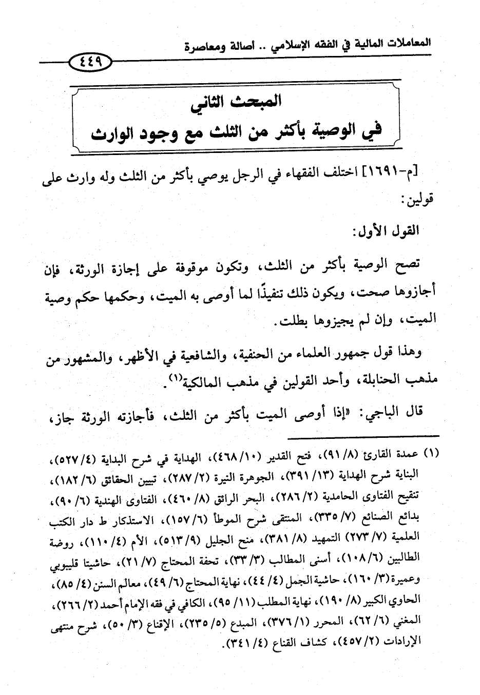 المبحث الثاني في الوصية بأكثر من الثلث مع وجود الوارث
