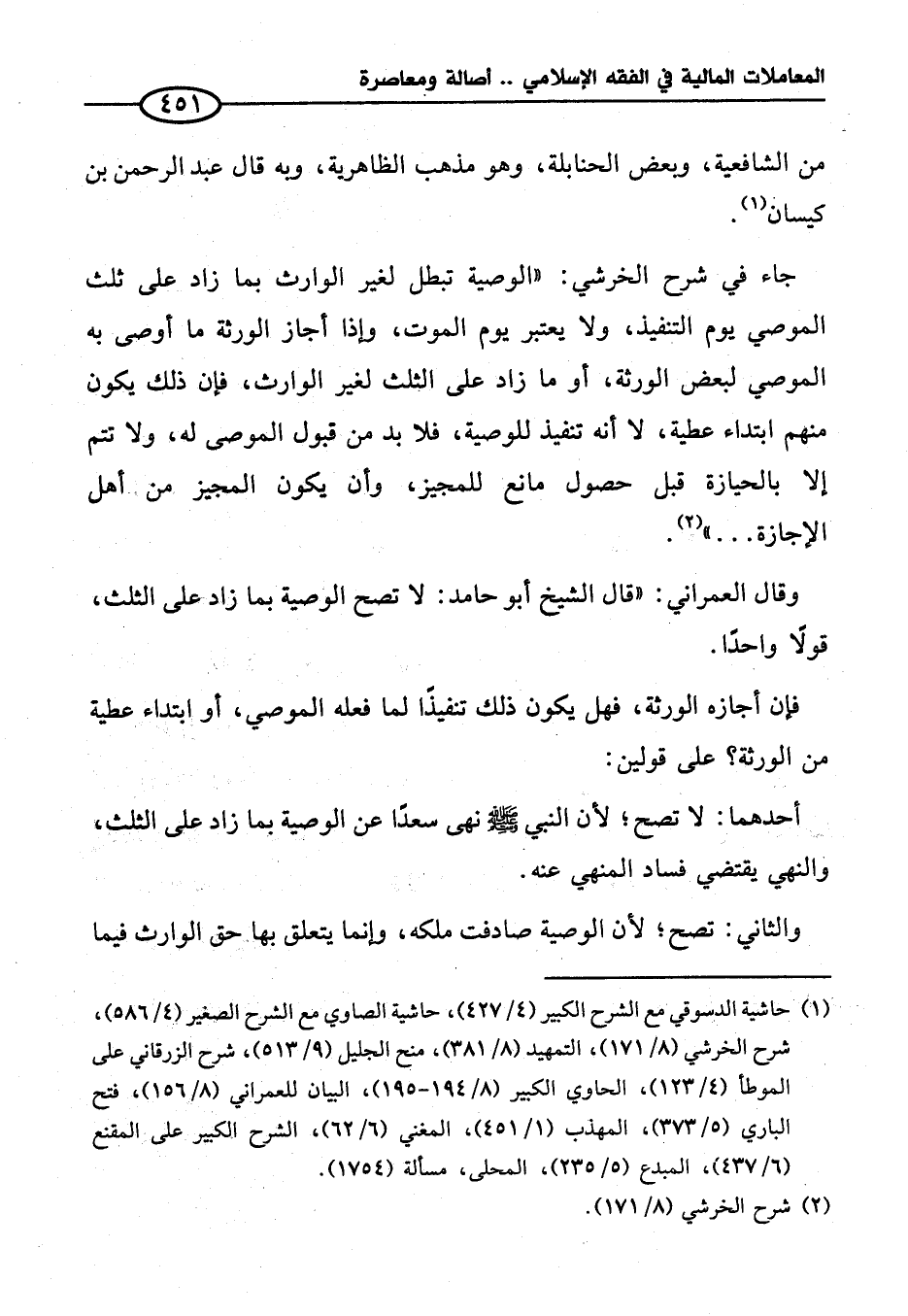 وقال العمراني: "قال الشيخ أبو حامد: لا تصح الوصية بما زاد على الثلث، قولاً واحدًا.