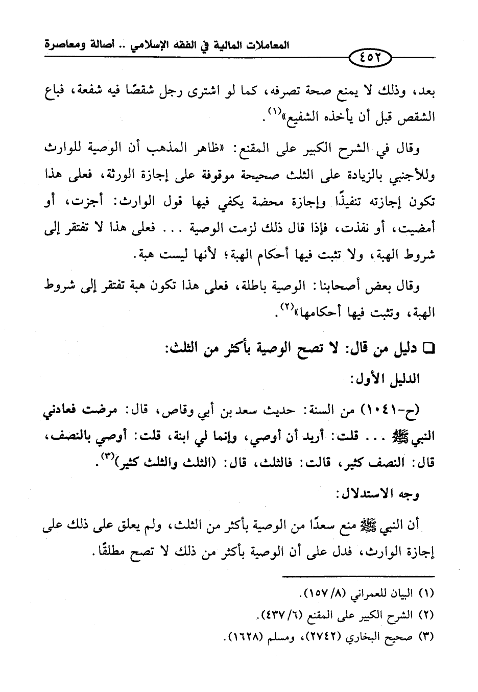 دليل من قال: لا تصح الوصية بأكثر من الثلث: