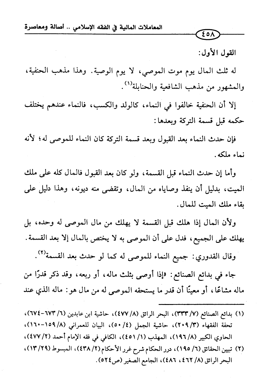 وأما إن حدث النماء قبل القسمة، ولو كان بعد القبول فالمال كله على ملك الميت، بدليل أن ينفذ وصاياه من المال، وتقضى منه ديونه، وهذا دليل على بقاء ملك الميت للمال.